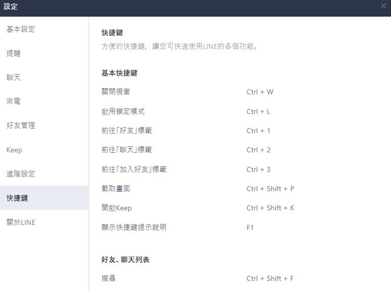 首先一定要熟知的就是LINE的各種「快捷鍵」,在電腦版設定中有可以查看所有快捷功能的一覽表,只要在多次使用記住後,下次當同事還在到處點點按按,你早就已經超前完成工作。效率高,快狠準!
