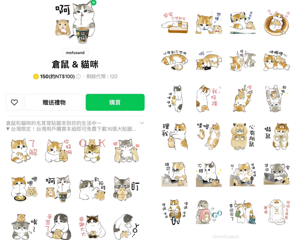 大放送~現在只要購買這款「倉鼠&貓咪」貼圖,就可以立即再獲得多達16張專為台灣設計的「Waku Waku 台灣貓咪特典貼圖」!