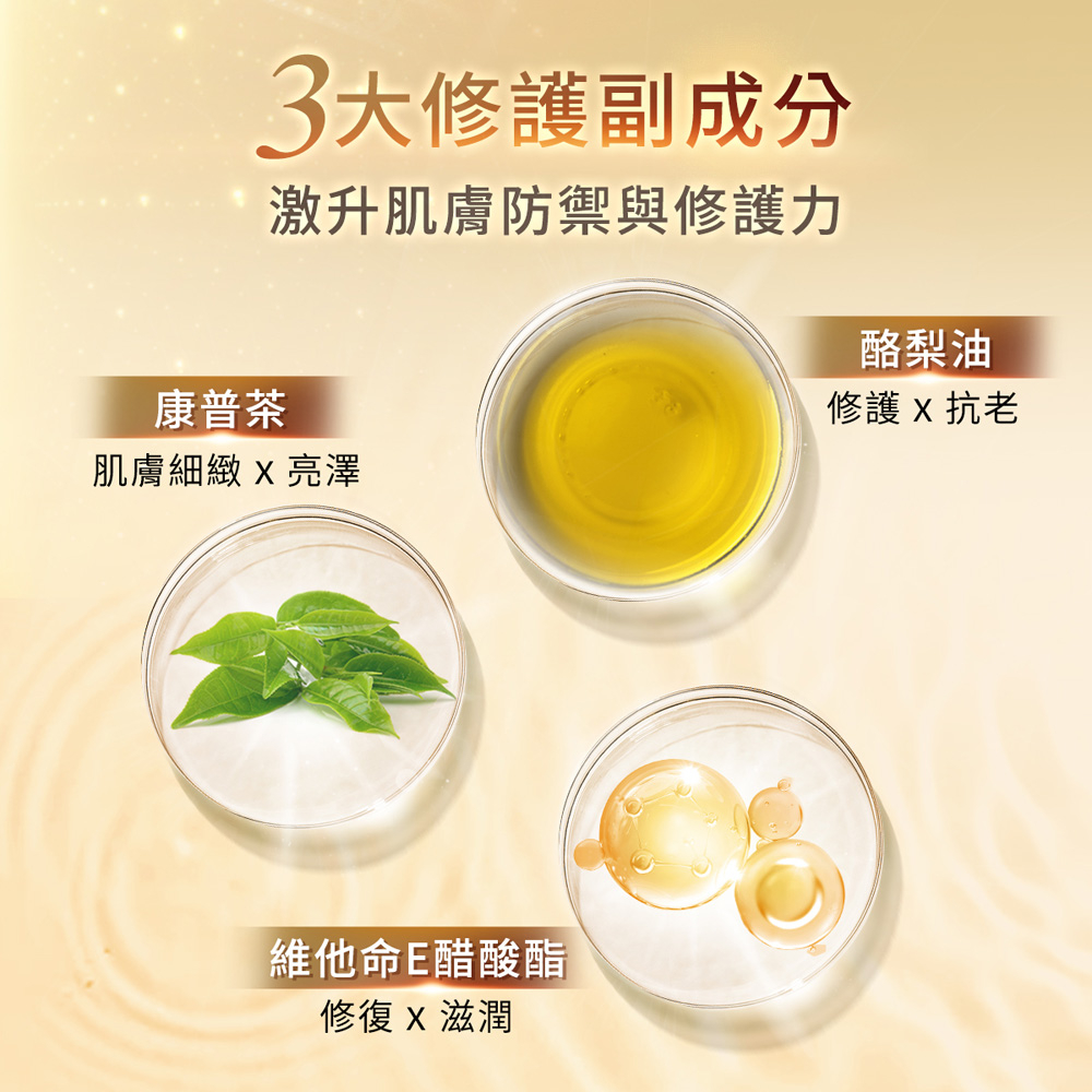 首先成分的部分也是沒在客氣,主成分是採用了「地中海岩薔薇」,富含了多重營養素,結合三大修護副成分「康普茶」、「酪梨油」、「維他命E醋酸酯」,讓你的肌膚能夠淡化細紋、緊緻肌膚、提升明亮度及滋潤度,恢復光滑會發光的少女感好氣色!