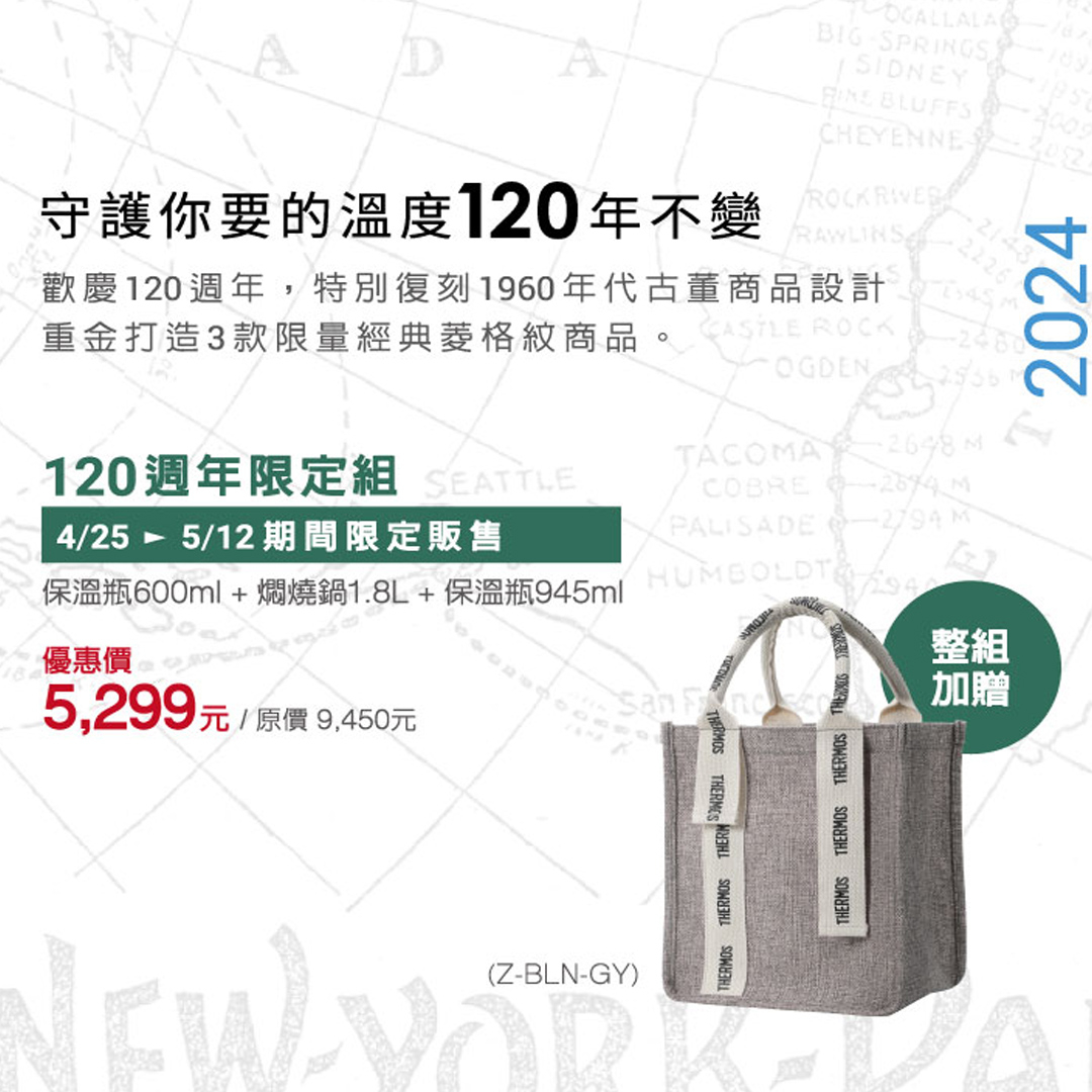 為歡慶THERMOS 膳魔師迎來創立120週年,特別從骨董瓶中汲取靈感,將1960年代具代表性的歐普藝術菱格紋印花復刻於三款經典人氣商品上,分別有600ml及945ml容量的真空保溫瓶與1800ml燜燒提鍋,以質感沉穩的墨綠色調搭配膳魔師極為經典的款式設計,符合多元族群的使用需求,也象徵著膳魔師不退流行、與時俱進的精神。同時,也同步推出120週年復刻版組合,不僅包含三款經典保溫瓶罐,更加贈限量品牌手提袋,一次即可集滿紀念價值滿滿又實用的120週年限量商品,千萬別錯過!