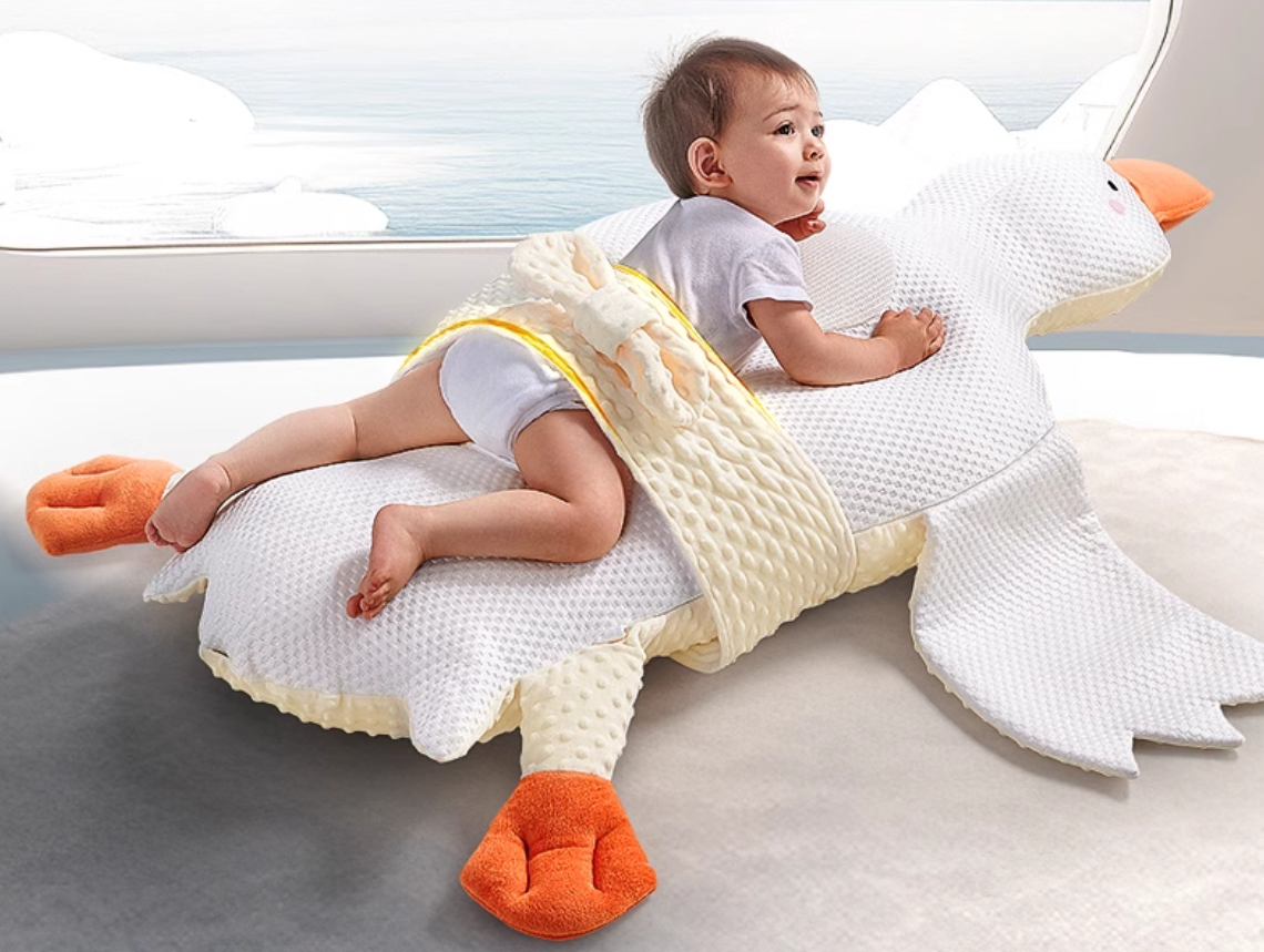 小編一看到這隻大白鵝立刻被萌到!光是擺在家裡就覺得好可愛~有的時候寶寶喝完奶會因為消化不良而脹氣,導致肚子不舒服就會哭鬧,實在是讓媽咪們很苦惱。「大白鵝嬰兒睡覺神器」可以讓寶寶以趴睡的睡姿躺在上面,35度的黃金傾斜角度,模擬父母的手臂貼合感,正反面還有小口袋能放棉包、熱敷袋,幫助寶寶更順利的排氣,讓媽咪也能夠暫時解放雙手~布料的材質有特別採用防窒息透氣的天絲設計,媽咪可以更安心的讓寶寶使用~這隻顏值高又實用的大白鵝,媽咪們還不立刻下單買回家!