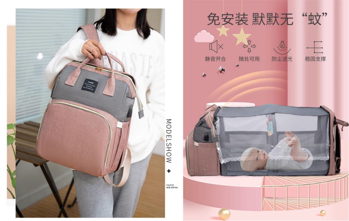 媽媽包是每個媽咪帶寶寶出門的基本配備,在選擇媽媽包的時候,當然不只要好看,性能才是最重要的一點!這款「多功能媽咪包」除了能當作裝寶寶物品的包包,打開後居然還能變成嬰兒床模式,如果外出或出國旅遊時寶寶突然需要換尿布,臨時找不到可以更換的地方,「多功能媽咪包」就能夠拯救你!或是帶寶寶去戶外,寶寶需要午睡休息,它也設有防蚊帳、遮陽簾可以讓寶寶安心的睡~嬰兒床居然可以背著就走,實在是太方便了!