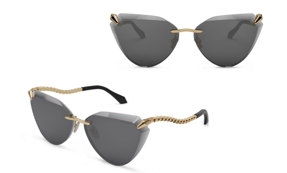 2024 名人時髦「太陽眼鏡」06:寶格麗 SERPENTI VIPER 灰色貓眼太陽眼鏡,價格店洽