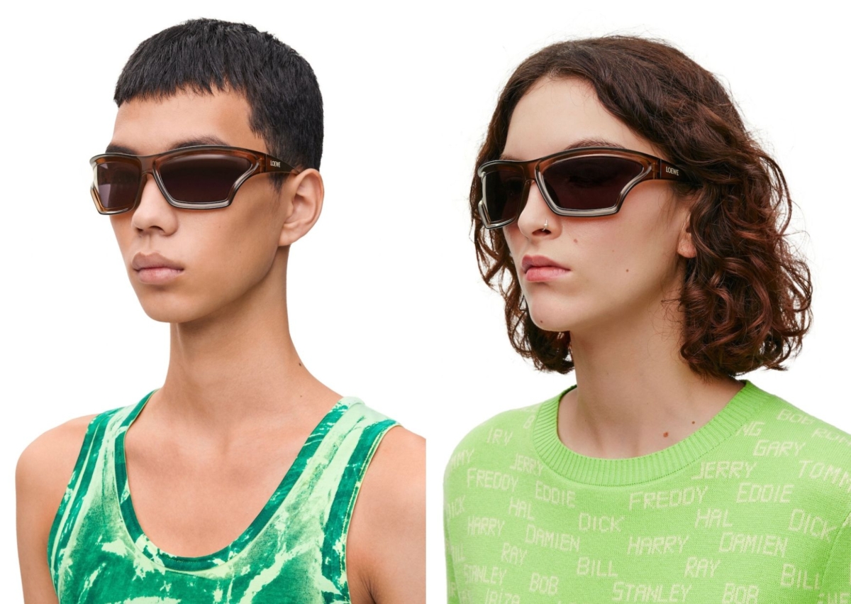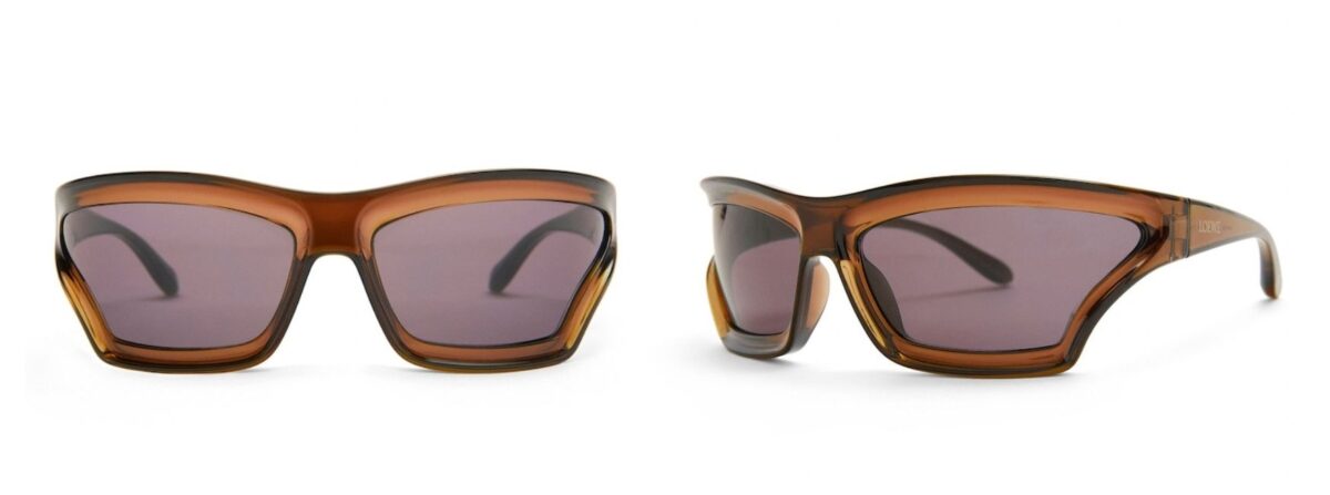 這隻熱騰騰剛上市的新款 LOEWE Arch Mask 透明棕色太陽眼鏡,帶有流線形的醋酸纖維 Sporty Mask面罩式設計,拱形面具太陽鏡是由尼龍製成,具有醒目的鏡框和形狀獨特的鏡片,戴起來能完美貼合臉部曲線,有種運動流線型設計感!