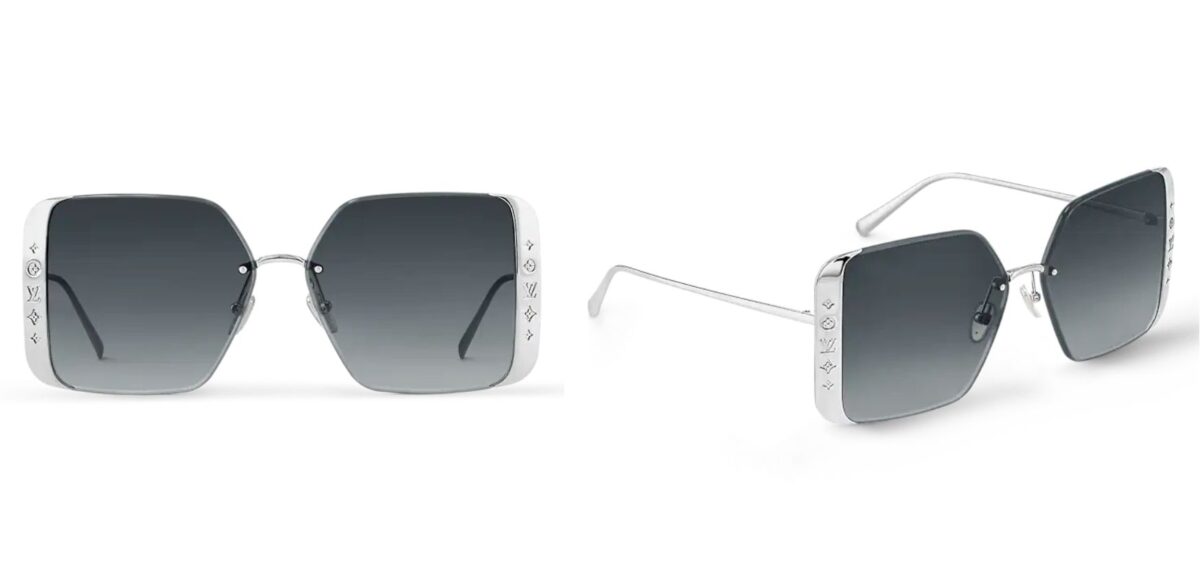 這款 Louis Vuitton Moon Metal Square 太陽眼鏡以嶄新元素演繹 LV Moon 標誌,為經典鏡片造型增添前衛精神,時尚的無框設計在側面綴有鈀色金屬標誌,並致敬品牌雋永的 Coussin 手袋,精心刻有LV Initials 標誌及 Monogram 花卉圖案,而且這隻墨鏡還可以完美修飾臉龐,打造奢華而低調的標誌性造型。