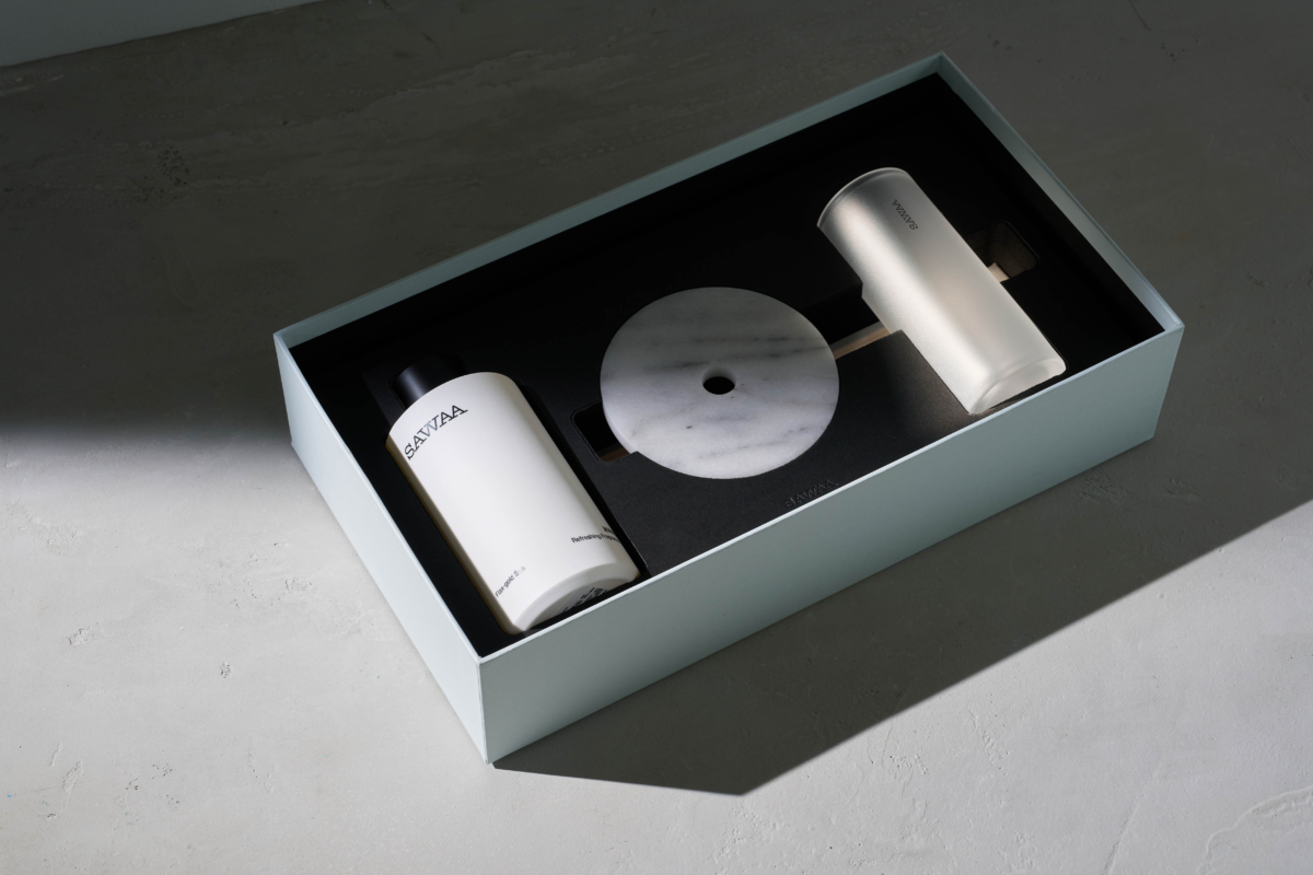 基於對美的重視,SAWAA多次與藝術對話以美學為養分滋養著品牌。這次的擴香禮盒邀請了台灣設計師聶永真操刀,以極簡純粹的風格,創作三款充滿自然色彩的擴香,將啟迪品牌發展的自然風土完美延伸。