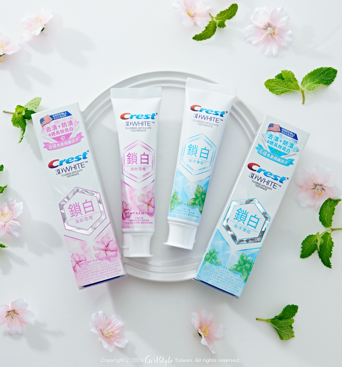Crest香氛鎖白牙膏膏體是那種Bling Bling的超級閃雙色膏體,一擠出來少女心心噴發~膏體就已經夠讓人心動了,新款「海洋薄荷^」、「清新雪櫻^」散發的療癒香氛更是讓人如沐春風,沁爽的薄荷和清新怡人的櫻花香氣在嘴裡瀰漫著,療癒的香氛在刷牙時也是SPA般享受-,每一天的刷牙時刻都是小確幸,跟朋友對談時再也不用遮遮掩掩,完美掃除口腔異味,隨時都有清香好口氣。