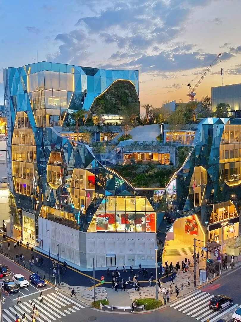 這間HARAKADO是在2024年4月開幕,由東急不動產「神宮前六丁目地區再開發企劃」所建造的最新百貨公司,位於JR山手線「原宿站」、千代田線和副都心線「明治神宮前站站」附近,遠遠就能到超特別的現代外觀設計,外牆不但像鑽石一樣閃閃發亮,頂樓還有中空的生態植物空間,不論白天還是夜晚都非常華麗獨特。
