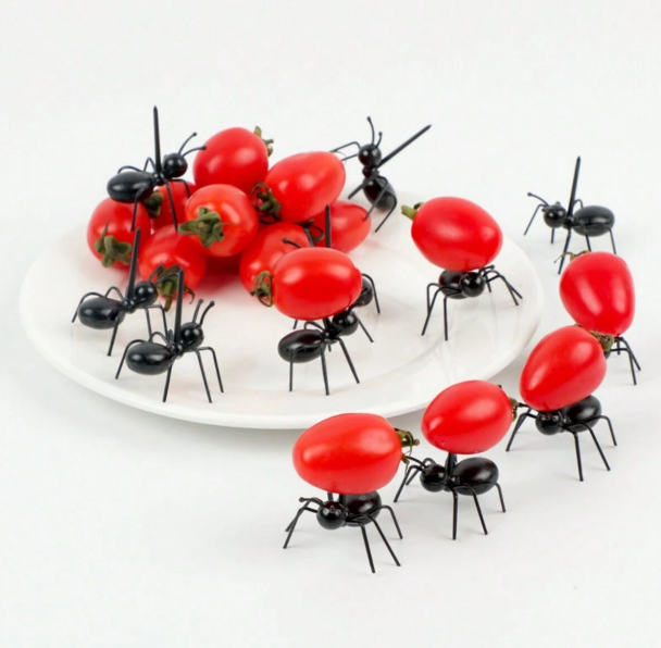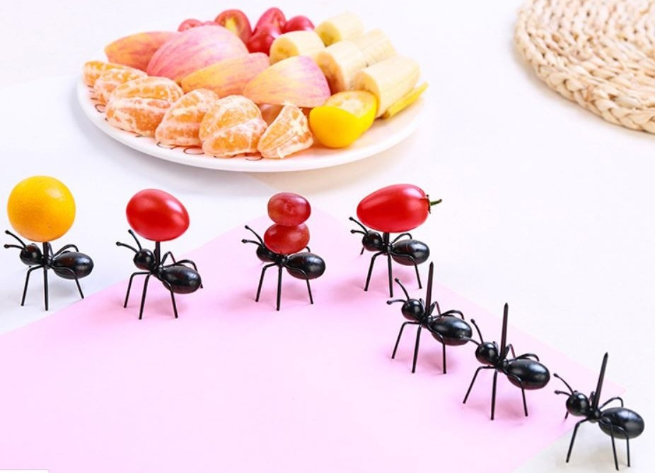 每當朋友或親戚到家作客時,絕對會準備的就是水果,不但好吃,準備上也方便。但有人也覺得水果單純放上盤子的擺盤方式會太無趣嗎?想要不只是五顏六色的水果躺在那,更想要來點有趣的變化的話,介紹你這款「螞蟻造型牙籤」!