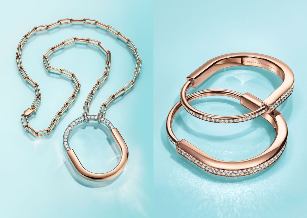 Tiffany Lock 系列玫瑰金鑽石項鍊(中型款),NT$ 219,000;玫瑰金鑽石耳環 (大型款),NT$ 348,000Photo from Tiffany & Co.