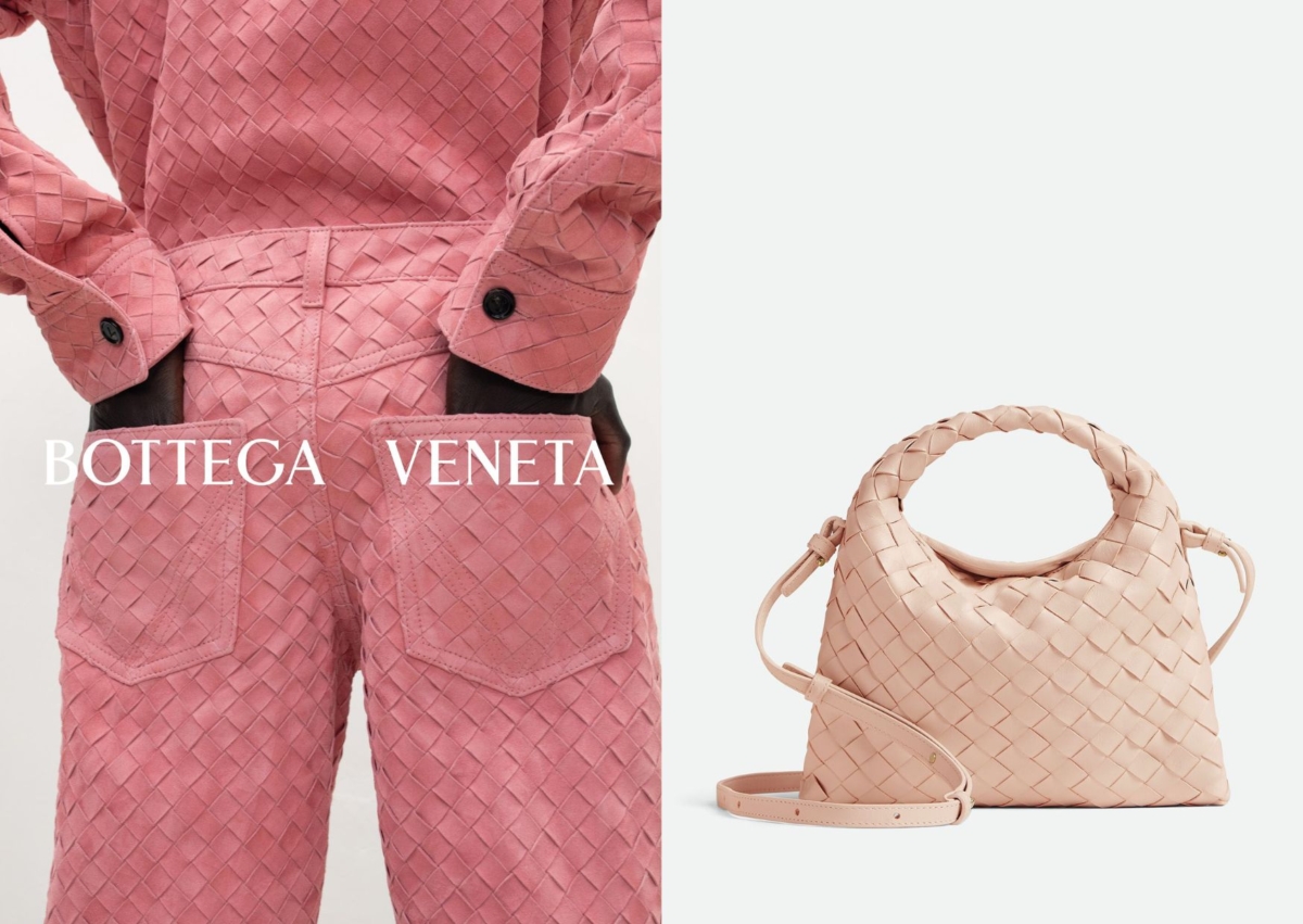 Bottega Veneta 不以原有的BV綠為基底,早秋與春夏這個時節點綴了奔放的粉色,不喧囂卻耐人尋味,豪不費力的展示出低調且內斂的氛圍,讓一切都變得更簡單更鬆弛,更適合日常。而這顆採用 Intrecciato 編織工藝製成的迷你Hop包,以小牛皮製成,整個包身沒有任何縫線,由工匠以3D Intrecciao編織技術手工編織而成立體的包型,呈現出標誌性經典三角型識別,粉色也好適合迎接即將到來的春季!