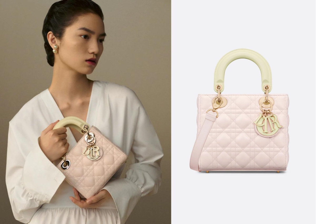 最懂女人心的 Lady Dior 包款展現 Dior 對高貴典雅及美麗的演繹,經典款風格歷久彌新、怎麼揹都不膩!換上淡黃色和粉水晶色羊皮療癒色系,包身上點綴 Cannage 籐格紋縫線,打造熟悉的經典絎縫紋理,D.I.O.R. 墜飾與頂部提把設計的是同色系琺瑯,這款 Lady Dior 小型包款還有搭配窄版的可拆卸皮革肩背帶,不管手提或斜背都可以。