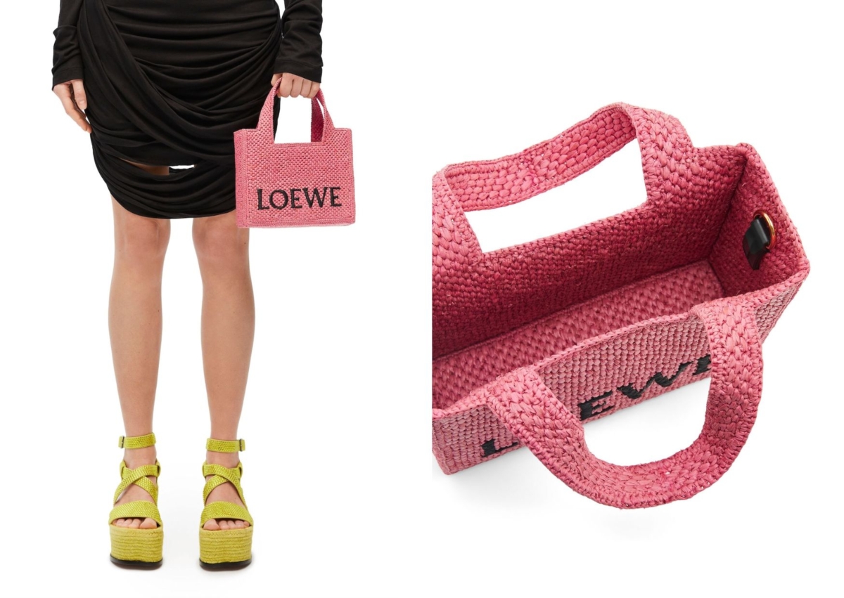 每到春夏繽紛時刻怎能不立刻想到 LOEWE 呢!這顆拉菲草迷你 LOEWE Font 托特包 以日落粉紅偽主,飾有對比鮮明的 LOEWE 標誌,採用西班牙酒椰葉製成,葉子的原料是由馬達加斯加的工匠親自種植、收穫、曬乾和手工編織的,因此十分得來不易,不只可以手提、肩背或斜背都合適,粉色系也好讓人愛不釋手!