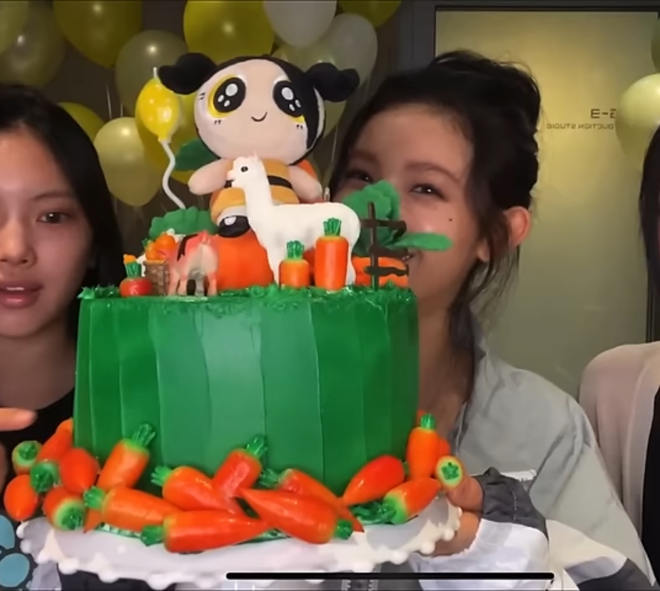而近日,有網友在韓國論壇上以「有點...與衆不同的NewJeans Haerin生日蛋糕設計」為標題,先是放上成員們的生日時的蛋糕,漂亮夢幻造型根據成員們的喜愛製作,每個都非常特別,像是Danielle平常超喜歡吃紅蘿蔔,生日蛋糕就有滿滿的紅蘿蔔~