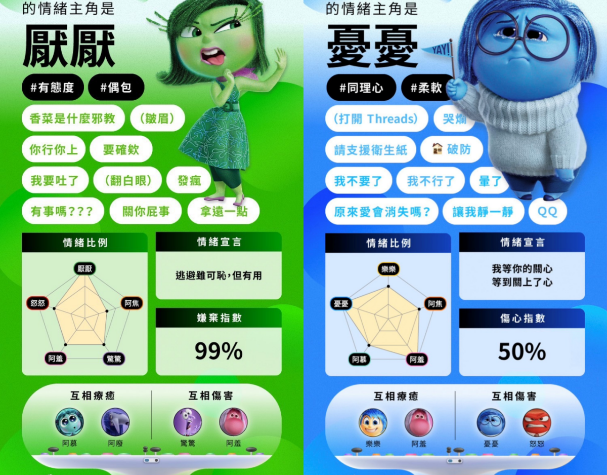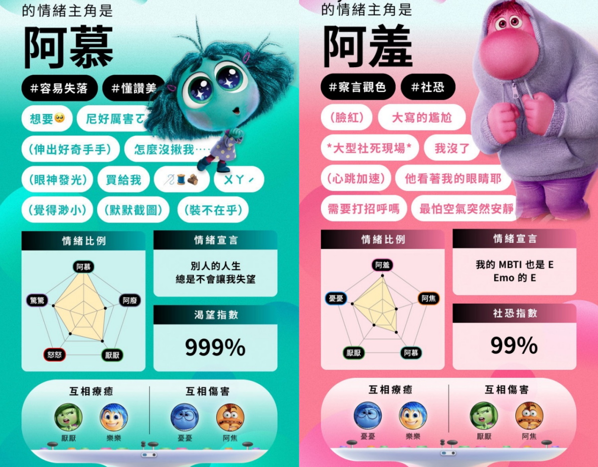 Photo from IG@disney、腦筋急轉彎2_EMO小劇場心理測驗網頁