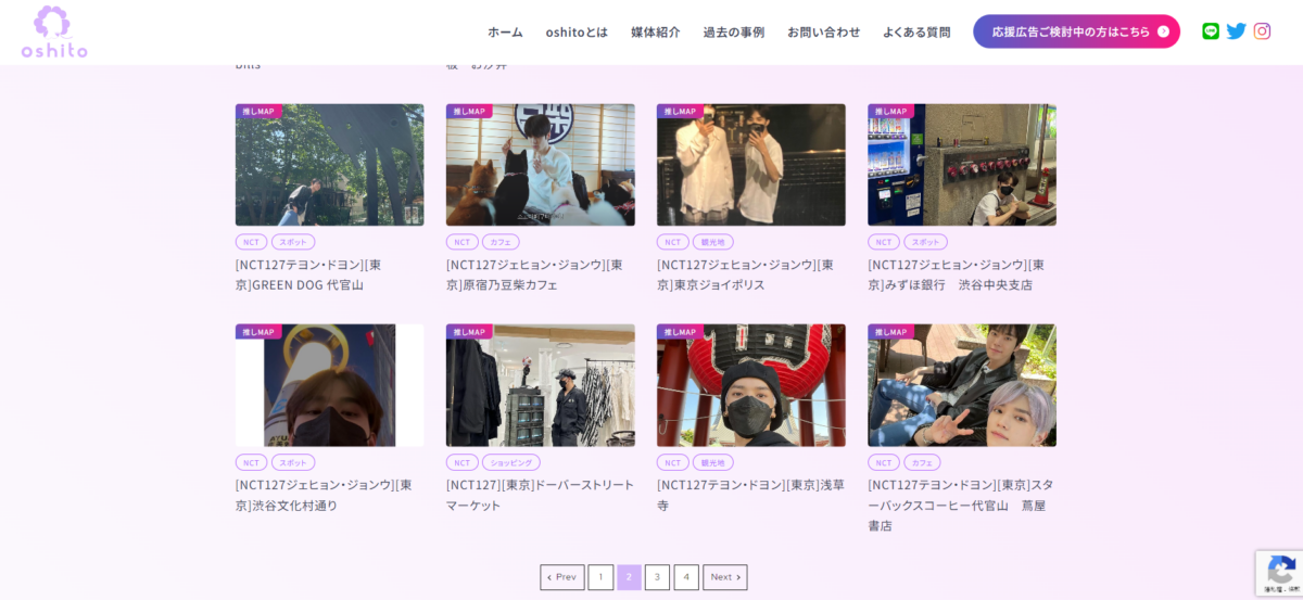 接著網頁就會根據剛剛的條件,一個個出現偶像們在日本到此一遊之地,並附上照片證明有來過~
