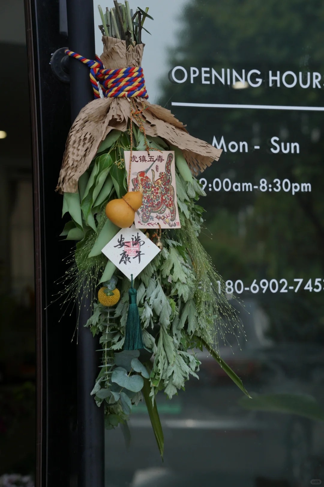 端午節掛菖蒲、艾草的習俗是為了驅趕瘟疫和邪氣,古人相信將菖蒲、艾草掛在門窗或樑柱上可以保佑家庭平安,有時還會加上蒜頭加重軀邪之意。而現代為了美觀,還有花店專門製作像花束一樣的造型艾草裝飾!