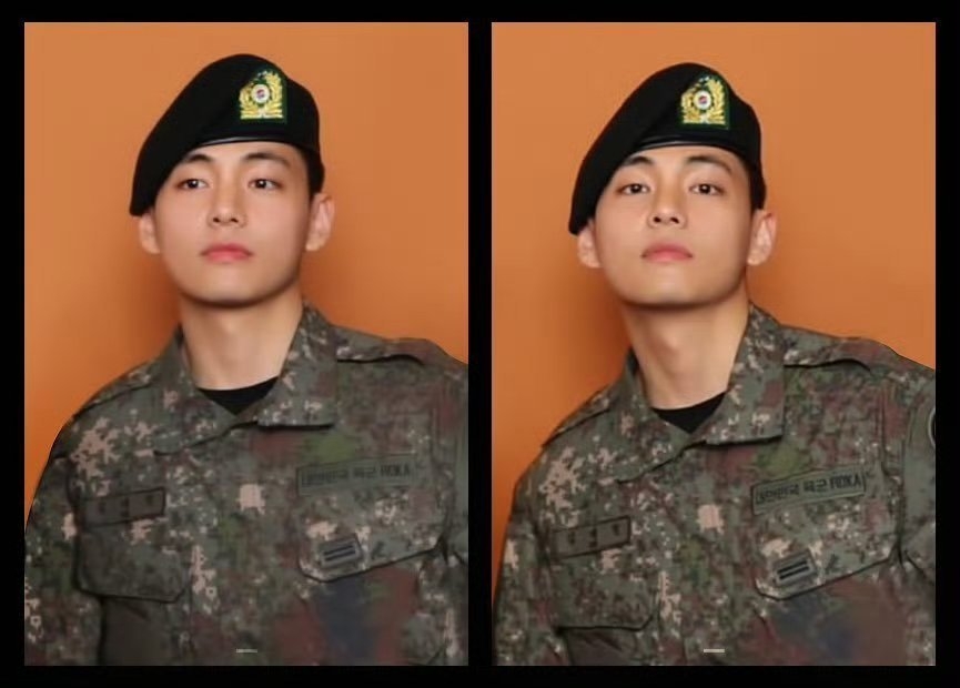 許多粉絲看到V現在的身材樣貌都覺得不可思議,貼出他2023年還沒入伍前與現在2024年入伍期間的照片做對比,發現不只是肩膀變得又厚又寬,就連胸肌都超明顯。為了符合SDT訓練的需求,V曾說過要努力增重變強壯,如今成功改變體格,加入軍警執勤時的模樣完全就像是在拍電影,實在是帥炸了!!