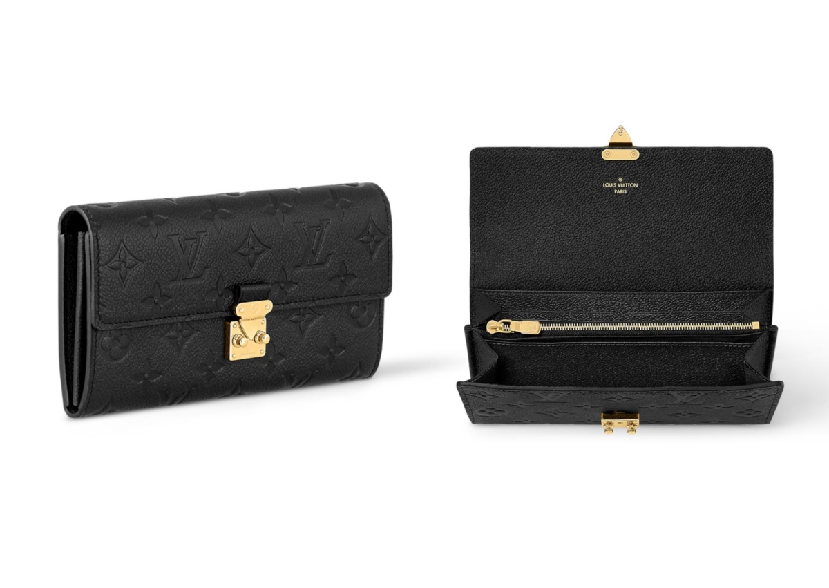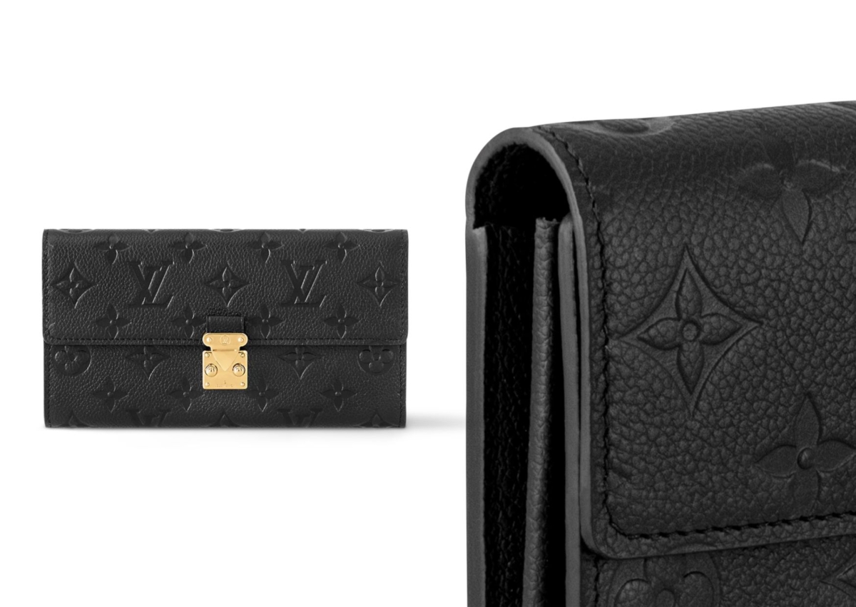Louis Vuitton Sarah 錢包採用 Monogram Empreinte 柔軟粒面壓花牛皮皮革製作,不只完美配襯呼應品牌標識性 Metis 手袋,翻蓋的金色 S-lock 鎖扣靈感更源自於歷史悠久的路易威登硬箱設計,是 Metis 系列的主打元素,這款長夾以優雅的長方形設計和寬敞的內部間隔著稱,備有一個大型風琴式隔層、拉鏈零錢格、兩個內置貼袋和十二個名片夾層。