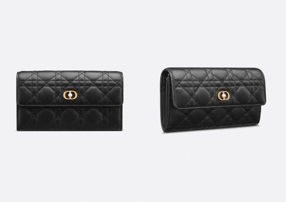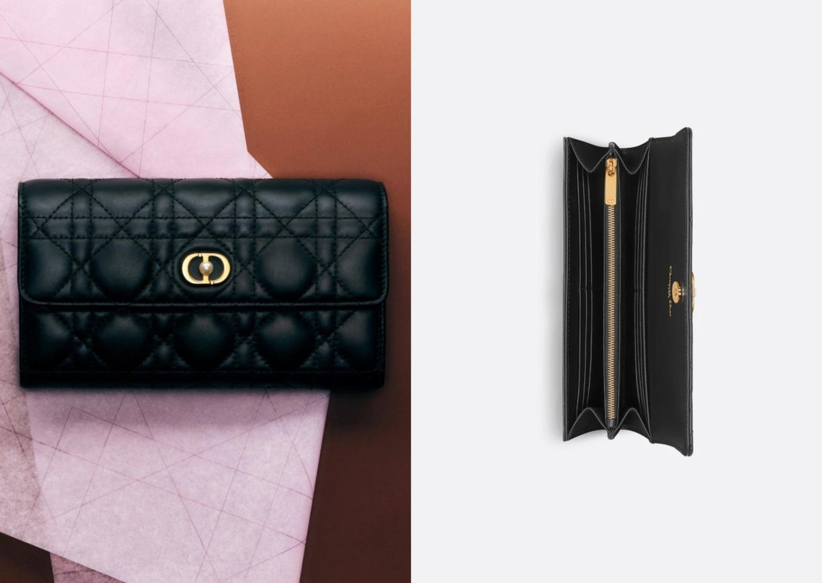 Dior Jolie 翻蓋長夾是 2024 的秋季新品,以義大利黑色小羊皮製作,觸感柔軟舒適,採用經典 Cannage 籐格紋縫線注入現代時髦感,正面除了標誌性 CD Logo 之外,翻蓋上還飾有一顆樹脂珍珠,為整體加入一絲優雅個性,這款長夾特別的是收納空間非常的寬敞,設有兩個隔層、十二個卡片夾層、一個貼袋和拉鍊口袋。