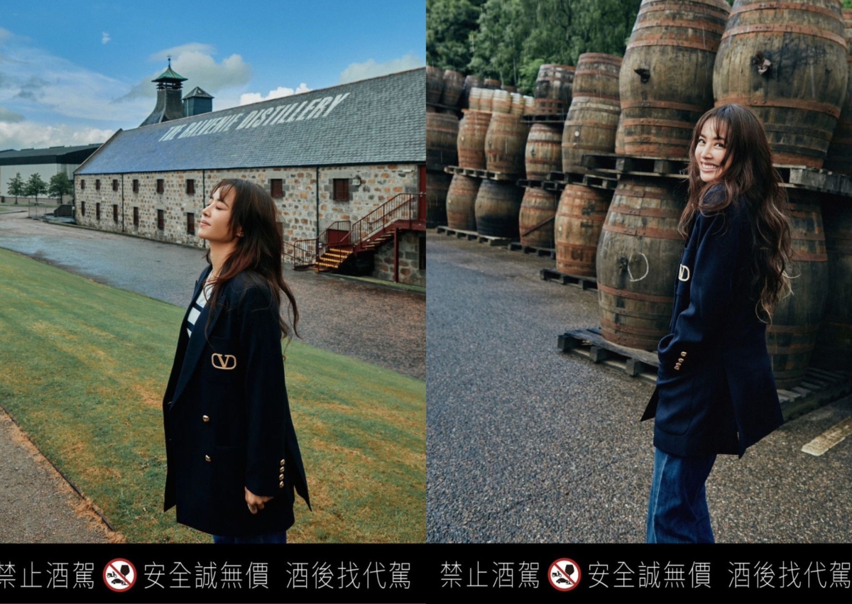 Jolin蔡依林趁著演唱會巡演空檔,和團隊一起遠赴蘇格蘭旅遊,從去年和百富單一麥芽威士忌合作後,Jolin 徹底愛上了品飲威士忌,這次蘇格蘭之旅特別參訪了百富威士忌酒廠,在百富全球品牌大使 Charlie Metcalfe 和台灣品牌大使 Daniel Shen 的導覽下,參觀引以為傲的五大製酒工藝,在蘇格蘭七十二變的天氣和大片森林的療癒下,Jolin 笑稱自己眼睛亮得像千里眼,對製酒過程更是充滿好奇、目不轉睛,酒廠匠人也熱情邀請躍躍欲試的Jolin親自體驗威士忌製酒過程,不但拿起鏟子嘗試手工翻麥,還學習辨別敲打蒸餾器的聲音,看著成堆壯觀的橡木桶也忍不住合影留念。