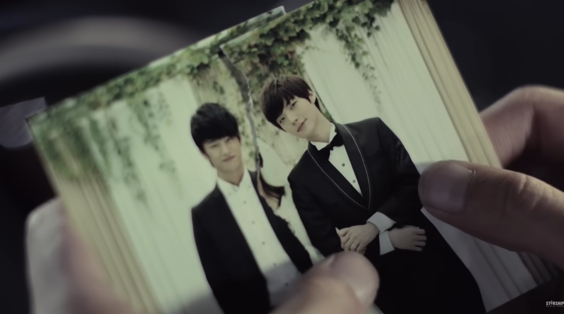 還記得那部比電影還精采的MV嗎?2012年韓國歌手K.will推出的歌曲〈請不要這樣〉,特別找來演員徐仁國、安宰賢與SISTAR多絮拍攝一個關於「三角戀」的愛情故事。MV中以徐仁國的視角看待朋友們結婚,呈現出像是自己喜歡的多絮要與安宰賢而感到心煩,表面參加婚禮祝福,實際上很介意這段關係,結束後只能在車上痛哭。不過就當大家也跟著沉浸在徐仁國的悲痛中時,他卻拿出當天婚禮與新郎安宰賢、新娘多絮的合照,撕成兩半後把自己和安宰賢拚在一起!