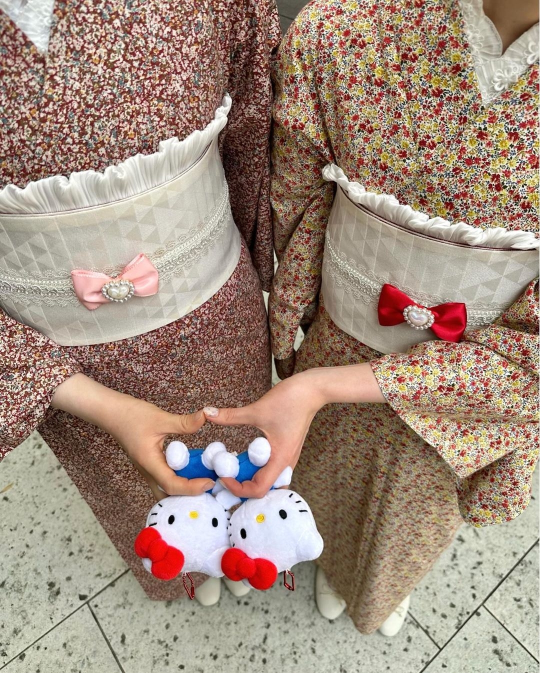 完全就是適合姊妹、朋友們一起穿的和服呀~相同造型可以選擇不同顏色的Hello Kitty蝴蝶結,與閨密個挑選好再一起綁上一樣的髮型,走在當地路上絕對是大家的焦點XD