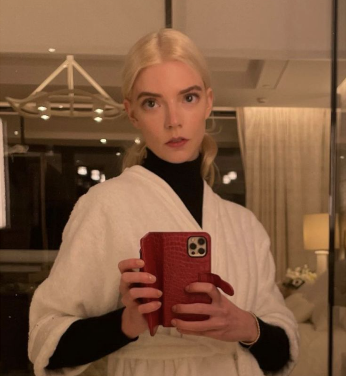 但沒想到年僅28歲的安雅泰勒喬伊用的卻是這個「長輩愛用款」手機殼,而且還是大紅色配上鱷魚紋的樣式,超有衝擊感的選擇引起網友熱議,紛紛留言表達看法:「安雅的手機殼我真的怎麼看都看不習慣哈哈哈」、「還以為是我媽媽的手機XD」、「旁邊夾層還塞滿信用卡欸哈哈真的是老派靈魂」、「連顏色跟花紋都剛好很經典長輩款」、「安雅泰勒喬伊真的一直不斷給人呆萌反差感耶」、「超美的安雅泰勒喬伊用翻蓋式手機殼違和感超重哈哈」、「還以為是我媽媽的呢」、「雖然不喜歡,但不得不說這種手機殼保護性質很好...」、「安雅泰勒喬伊只會用iPhone手機不會用Apple Pay嗎?」、「太好笑了連拍照動作都像我爸媽」。