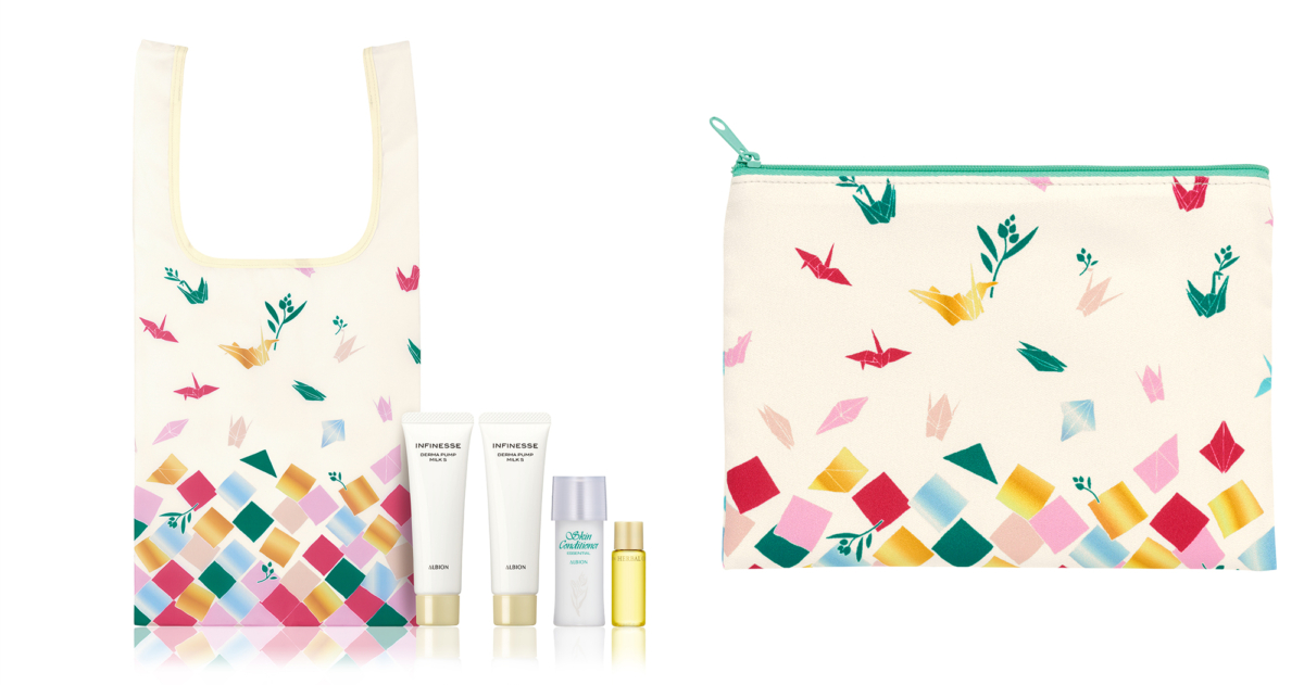 品牌特別攜手四百年歷史京都織品老店「永樂屋」打造限量贈品,運用永樂屋在織品及手袋上的專業,並結合了日本文化中擁有祝福意涵的「鶴」及健康化妝水「北之薏仁」,傳遞健康與平安順遂的概念,鐵粉們怎麼能錯過呢!
