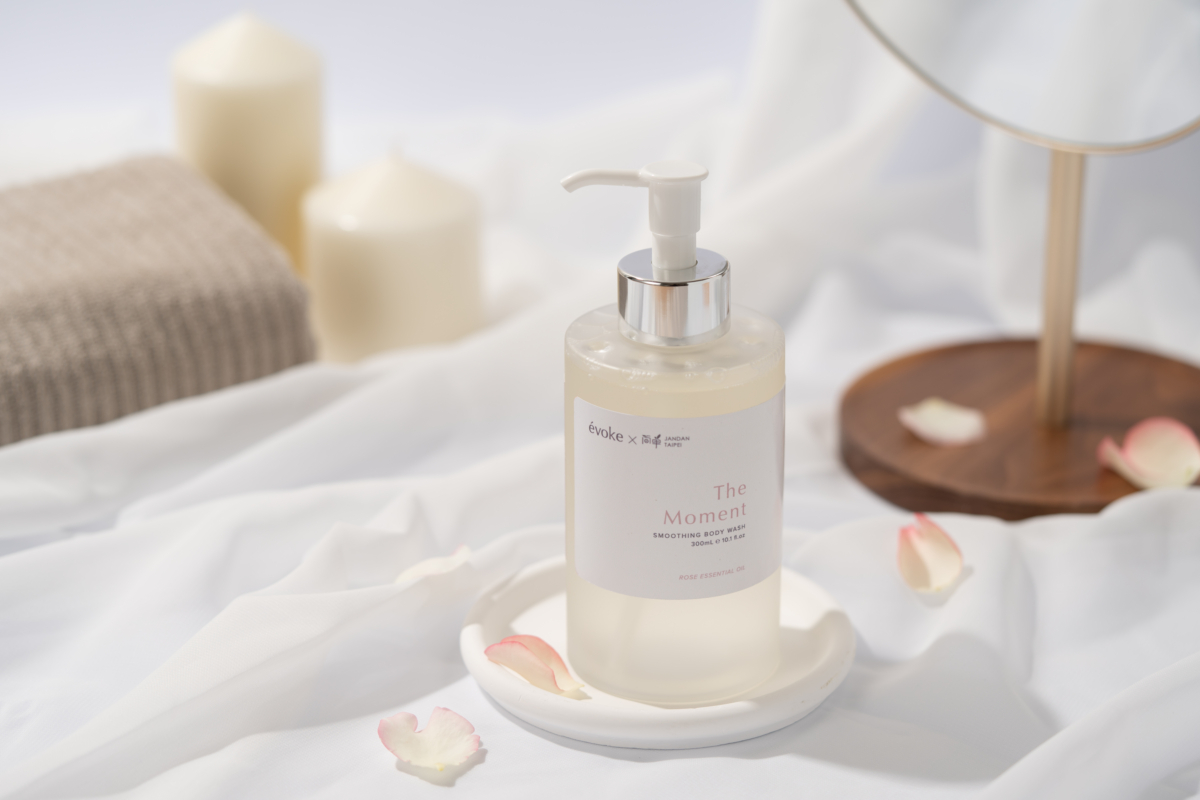 留白時刻舒緩沐浴露嚴選高規格的胺基酸成分,不具刺激性以溫和的效果洗淨肌膚,並添加多重保濕成分提高肌膚屏障,降低外在環境傷害,穩定肌膚狀況。香調則是運用了《簡單》最常使用的100%純精油玫瑰香,包含大馬士革玫瑰精油、奧圖玫瑰精油及玫瑰天竺葵精油,散發淡雅玫瑰清香能使心情放鬆、舒緩緊張,有助於心情保持平穩狀態。