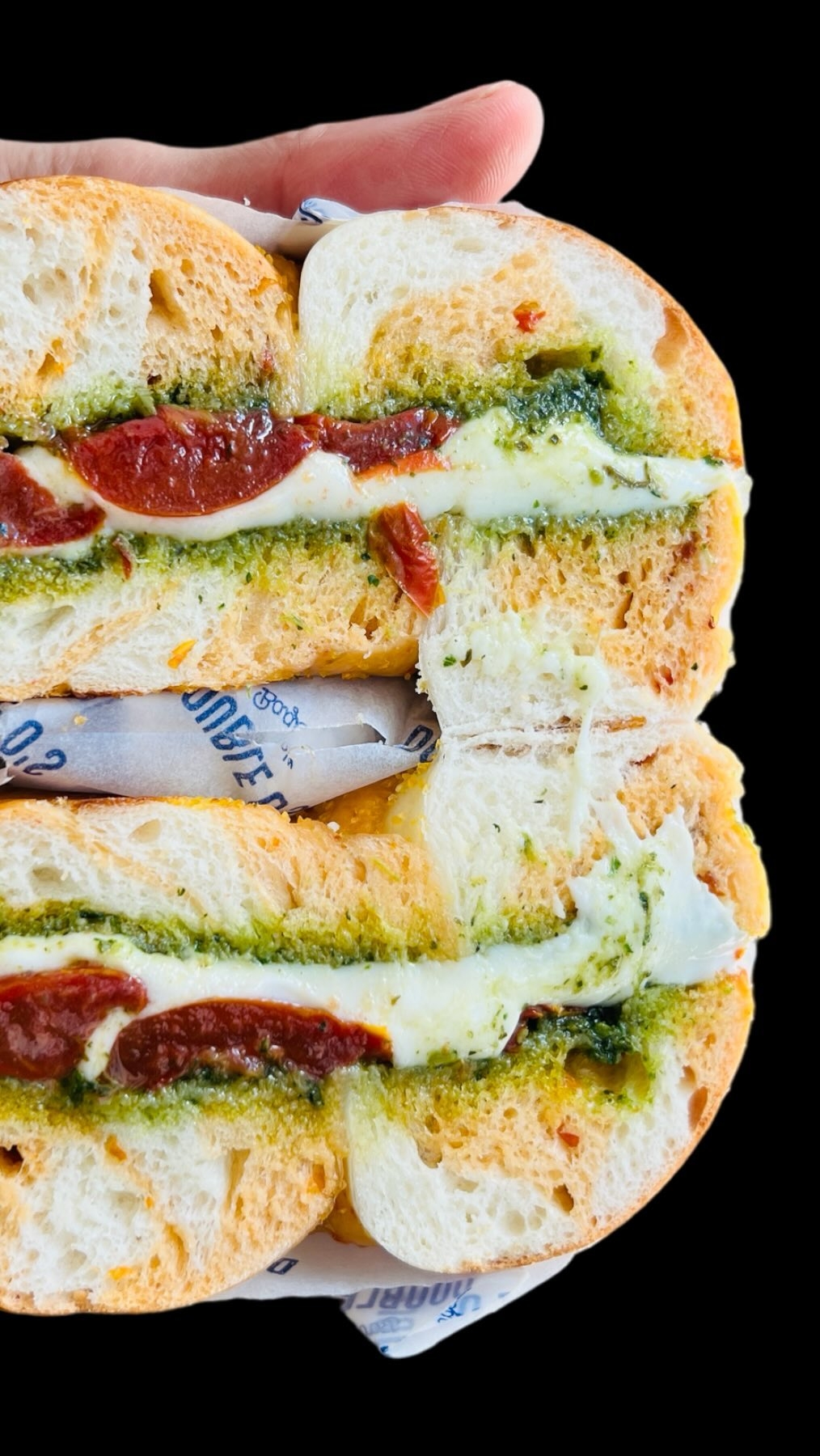 快點看看這個餡料厚度~會不會太誇張!光是拿著就快要滿出來,一開使得爆餡貝果就是從Doubleo’s bagels cafe’開始紅起來,不少人因為看到這個浮誇餡料專程跑到淡水光顧,貝果中夾著扎實的乳酪與義式香料,整體份量算多,店家很貼心會將貝果切成兩半,胃口小的女孩可以考慮和朋友一起共食一個~