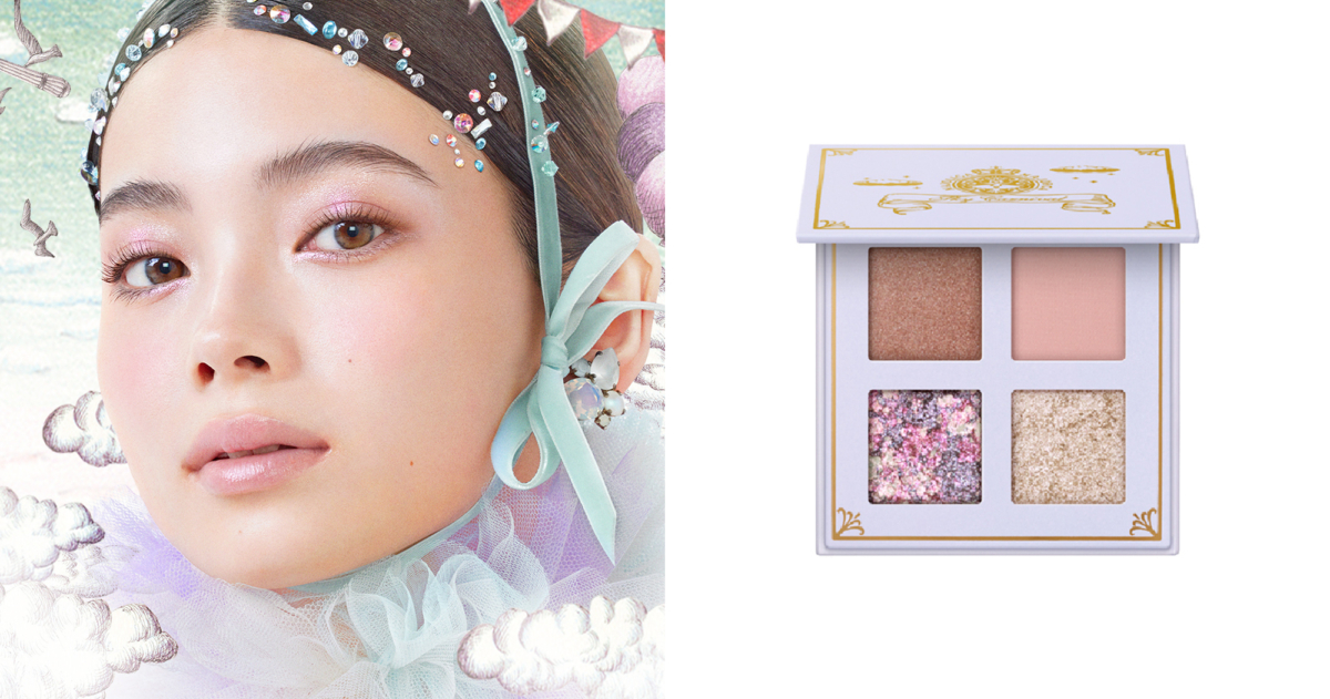 以黃昏餘暉時的天空色彩為靈感,從紅感的紫色調至沉穩的粉紅色調,表現黃昏時刻暮色天空綻放漸層之美,4色即使相互疊擦也不會濁色,以左下的漸層色和右上的主色為主軸,珠光色細緻的閃度則有畫龍點睛的效果, 將瑰麗魔法般的天空色彩映射於雙眸~