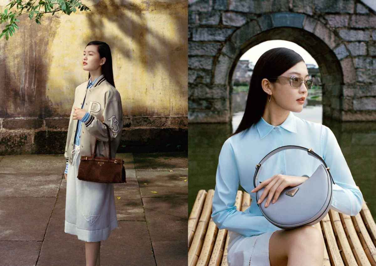 Prada 在七夕之際特別推出全新男、女服飾和包款,以淡雅色調呈獻與眾不同的樣貌,取景於簡約雅緻的古村中,建築物清晰的輪廓交織著自然景觀,Prada品牌大使李現和模特兒謝欣作為故事主角,仿佛一場浪漫的邂逅,在歷史與現代中倘佯穿梭。Prada Soft Lux 渲染上柔潤粉色,以煙草棕色麂皮重新詮釋;Prada Arqué 則推出花崗岩色與紫藤色,男士包款則採用獨家丹寧色皮革,展現時髦氣息。