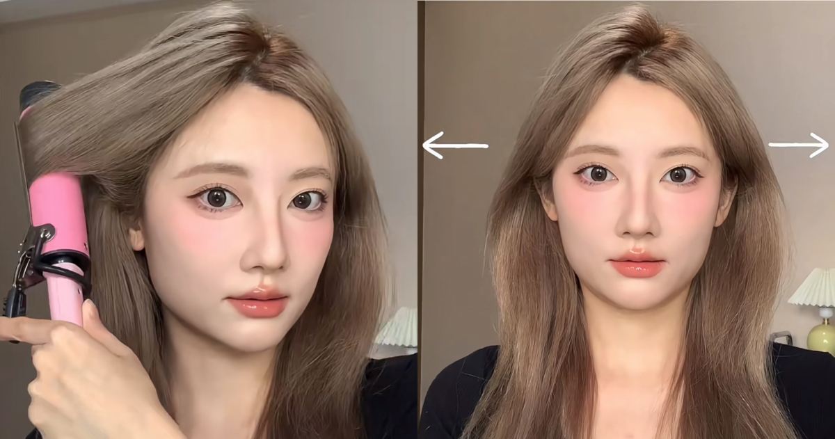 最後是在髮型的選擇,很多人會認為中庭長與長臉相等,只要劉其瀏海蓋住額頭減少臉部肌膚就能有縮短中庭的效果,事實上期瀏海的效果會讓視覺上的起點從比量開始而導致更加強化中庭長度,我們可以嘗試將顱頂提高和兩側頭髮的寬度來增加蓬鬆感,進而弱化長中庭。搭配電棒捲製造髮型的弧度,來形成橫向拉寬的效果,建議女孩可以捲耳後C字瀏海、八字瀏海等造型,都能有很好的修飾性唷!