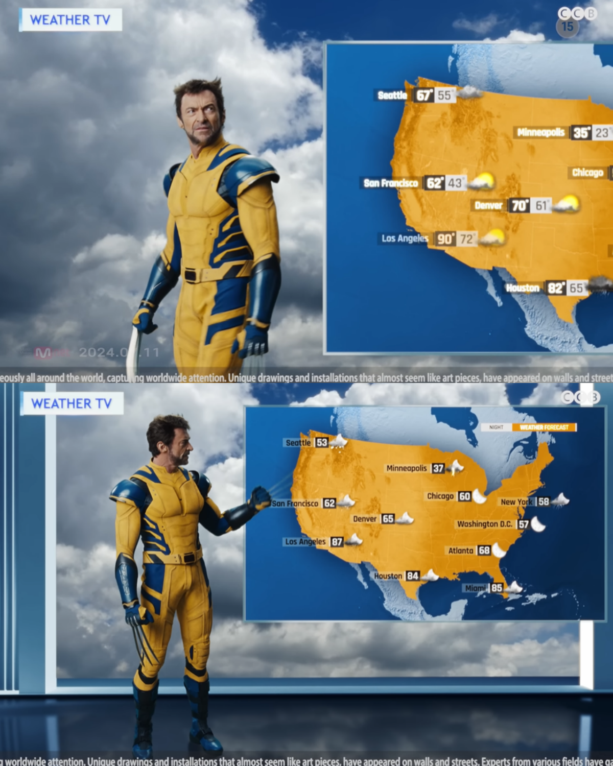 MV一開始,金鋼狼(休傑克曼飾)出現在新聞電視台的天氣預報鏡頭,沒搞清楚狀況為什麼變成氣象播報員的他,一如既往的厭世;話超多的死侍(萊恩雷諾斯飾)也變成主播不斷碎碎念,在混亂的情境中替Stray Kids的MV做搞笑有趣的開場。
