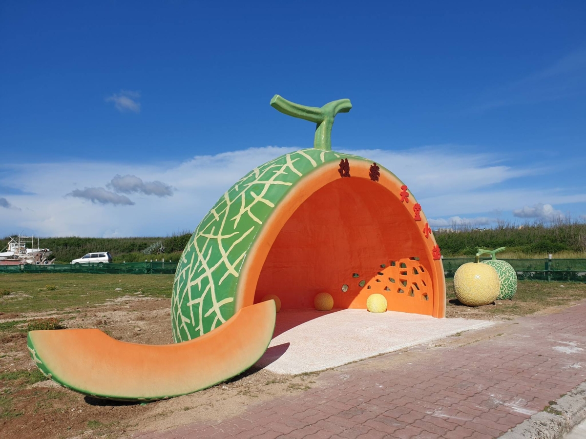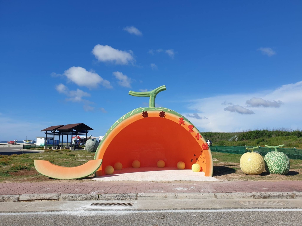 澎湖新地標!超Q「哈密瓜候車亭」成熱門必去打卡景點,在超巨大水果裡等公車就像在童話故事中~