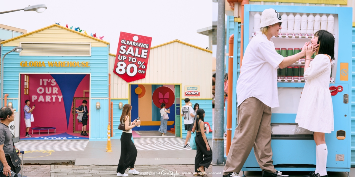 來到三期廣場鮮豔的「Gloria Warehouse視覺展」!入口處就立刻被亮橘色得復古公車椅吸引,每一張都是滿滿多巴胺 ! 這裡有一個販賣機是小編的私藏景點,真的仿佛置身於電影場景裡,只要自然的互動隨意擺個動作,立刻有小清新感,各位不用羨慕只要到華泰你們也能擁有超甜情侶照~