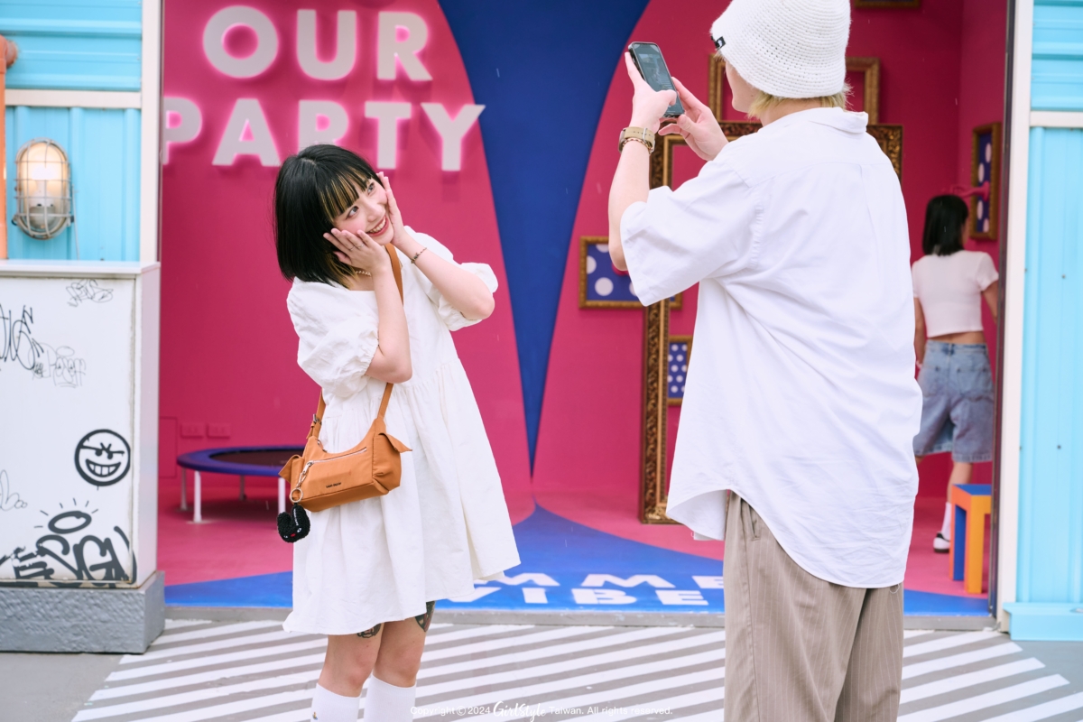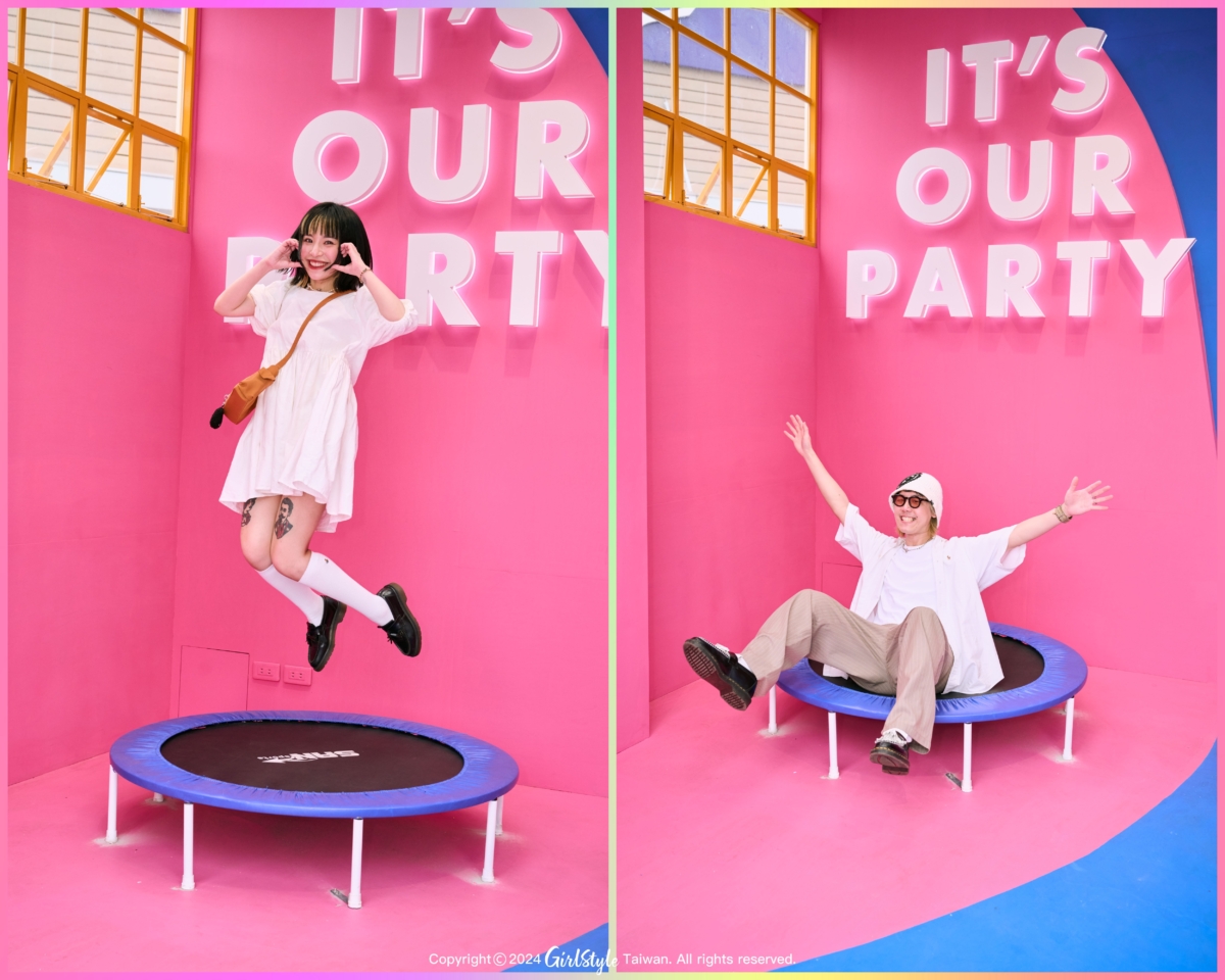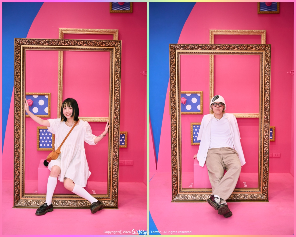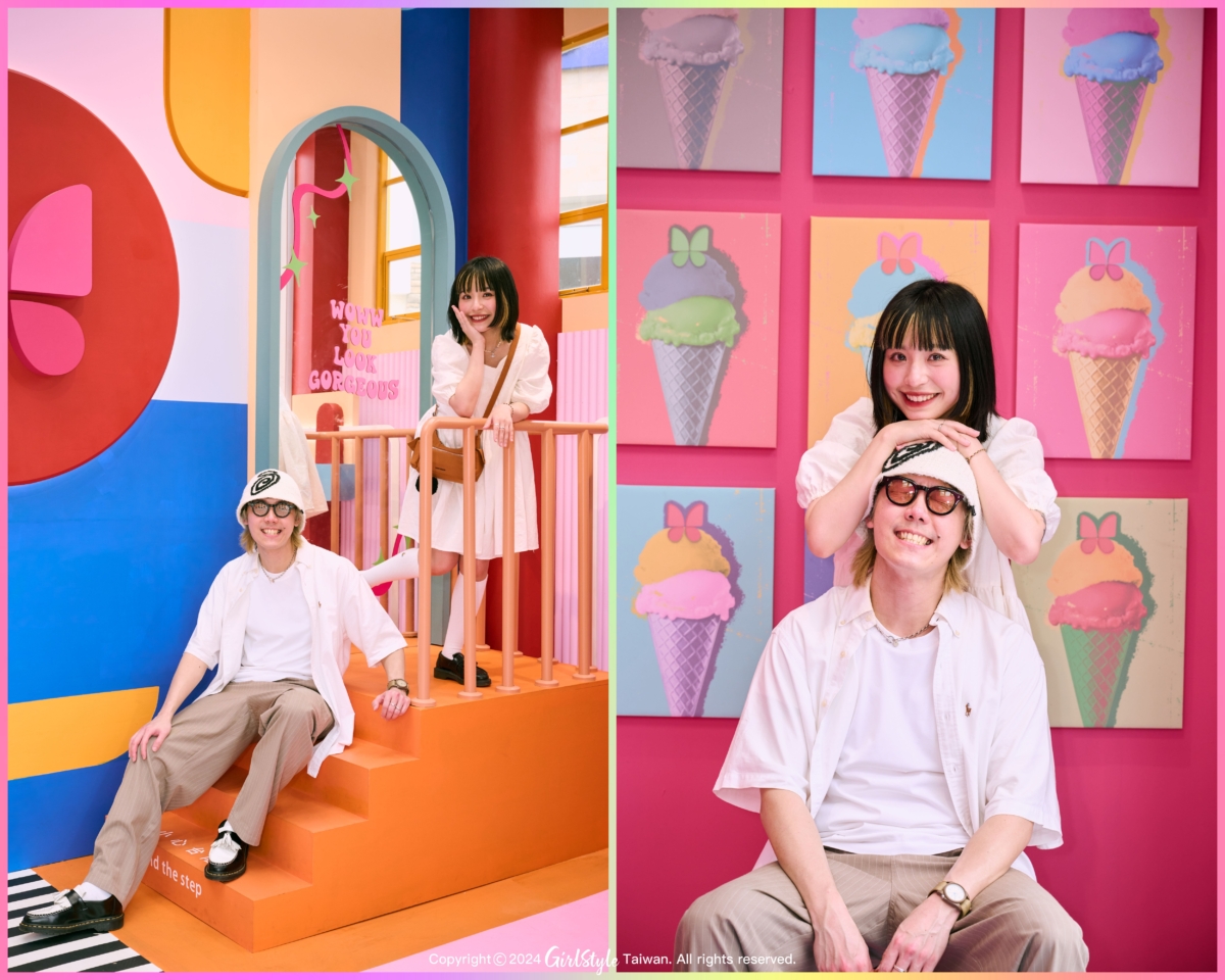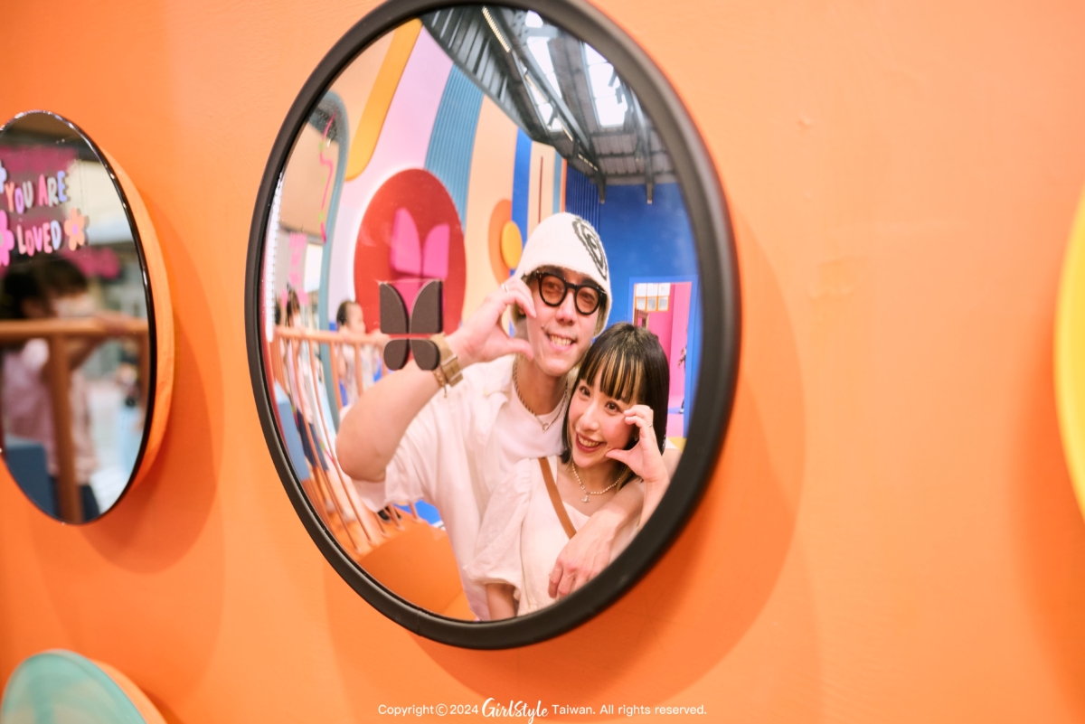 走入展間許多高色度的幾何色塊,大膽又鮮豔的配色非常SUMMER VIBE,和這個夏天一拍即合!身為粉紅控背景的桃紅色真的夢幻到尖叫!轉個彎還有華泰蝴蝶logo、曼菲斯風格冰淇淋,和全身鏡可以和男友來張鏡中自拍!