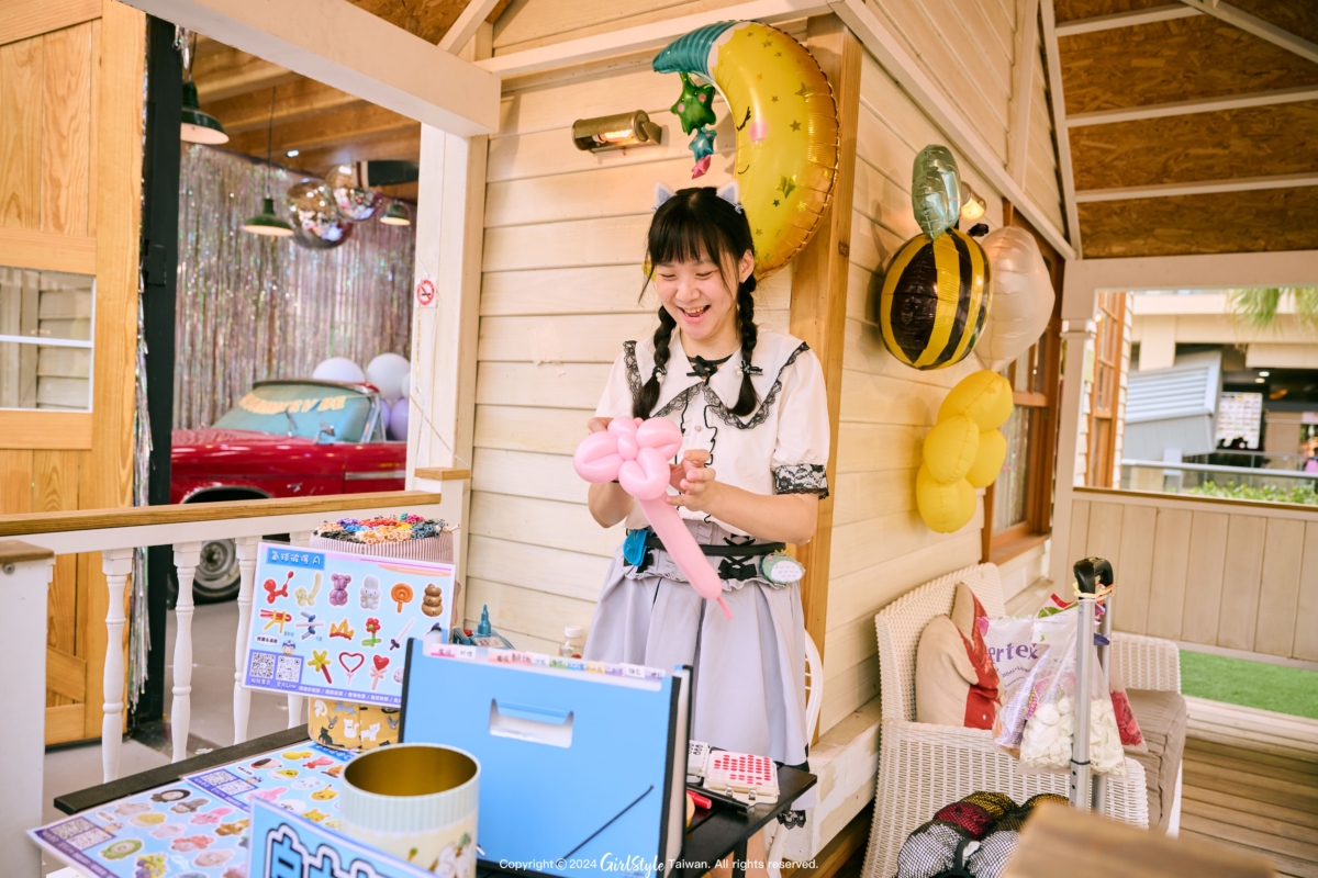 逛了一圈來到第一期夏日summer限定手作氣球互動表演,表演者創作很多款式可以供拍照使用 !不管是帥氣的漫威英雄、粉色系小兔子,跟女生小時候都幻想擁有一個的愛心魔法棒通通都有!
