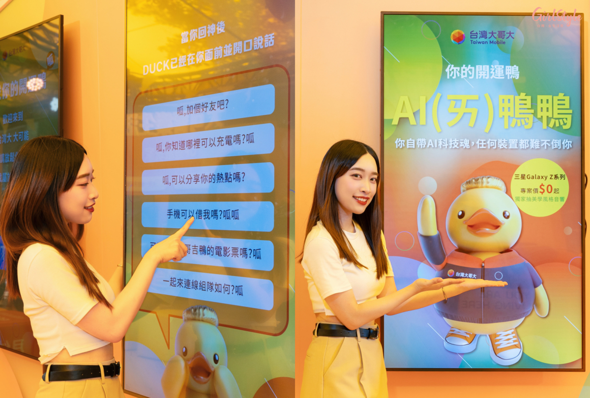 愛玩心理測驗的女孩到這裡集合就對啦!大螢幕互動體驗式心理測驗,幫你測出與你最合拍的專屬幸運鴨鴨~!G編的開運鴨是「AI(ㄞ)鴨鴨」!自帶AI科技魂果然是走在時代尖端的人(?)打開鴨鴨送上的獎勵獲得三星Galaxy Z系列專案價$0起!無痛升級AI手機就趁現在啦~一邊玩測驗一邊被Duck萌到!真的太療癒了~