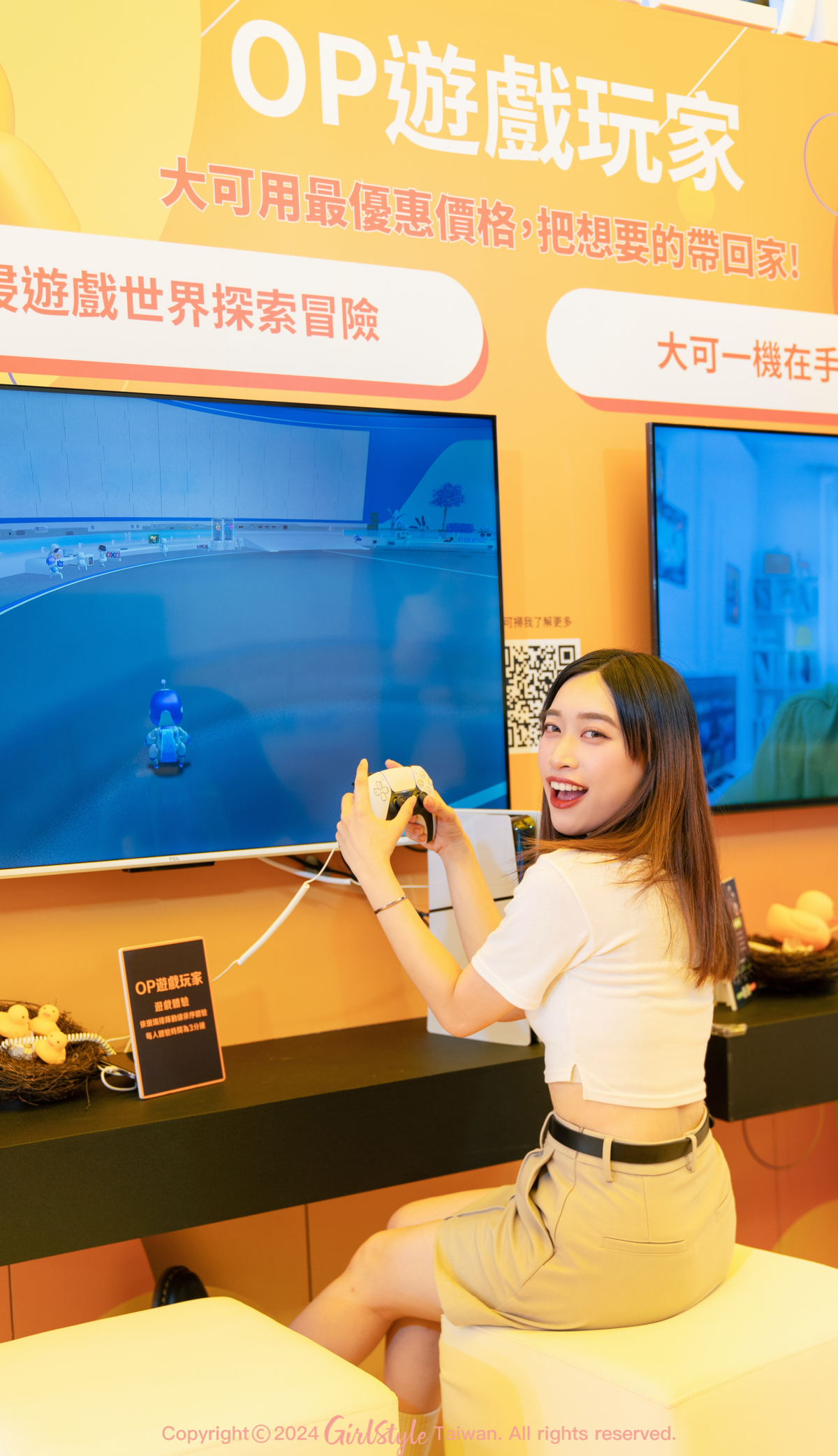 旁邊還可以玩Duck巨大疊疊樂~只要疊出OP影音劇院三個問題的答案就過關啦!噓~G編偷偷提醒可以注意下專案價、套裝內容和月付金額,就能一次穩穩過關~
