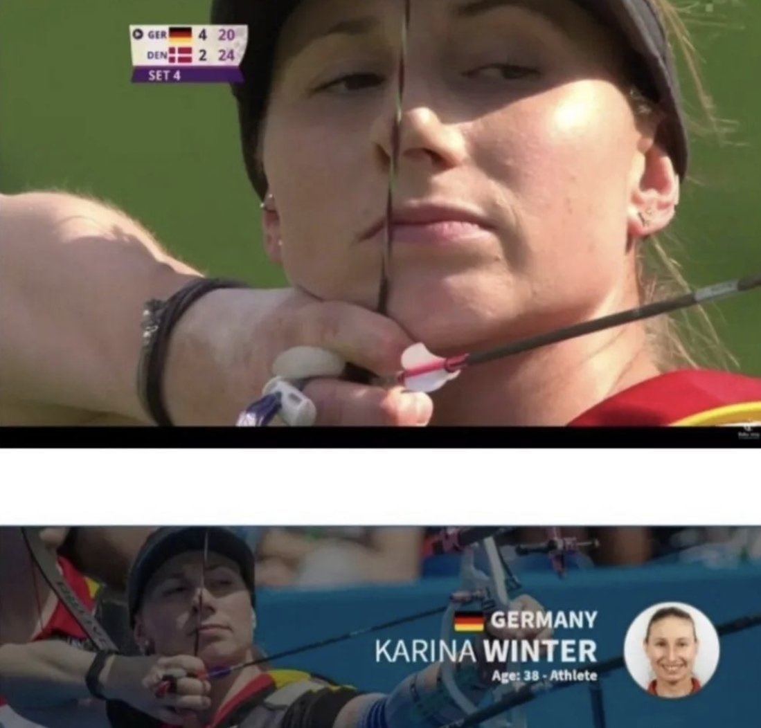 最後還有一件超有趣的小插曲,那就是在這次女子射箭比賽中,大家發現竟然有一位德國選手名字叫做「Karina Winter(卡琳娜·溫特)」!不但超級巧,姓與名一次撞名aespa的成員Karina、Winter,而且還剛好是隊內最有名的CP(情侶)組合,許多粉絲都紛紛在網路上瘋傳大喊:「冬柚果然是命中注定!!!」