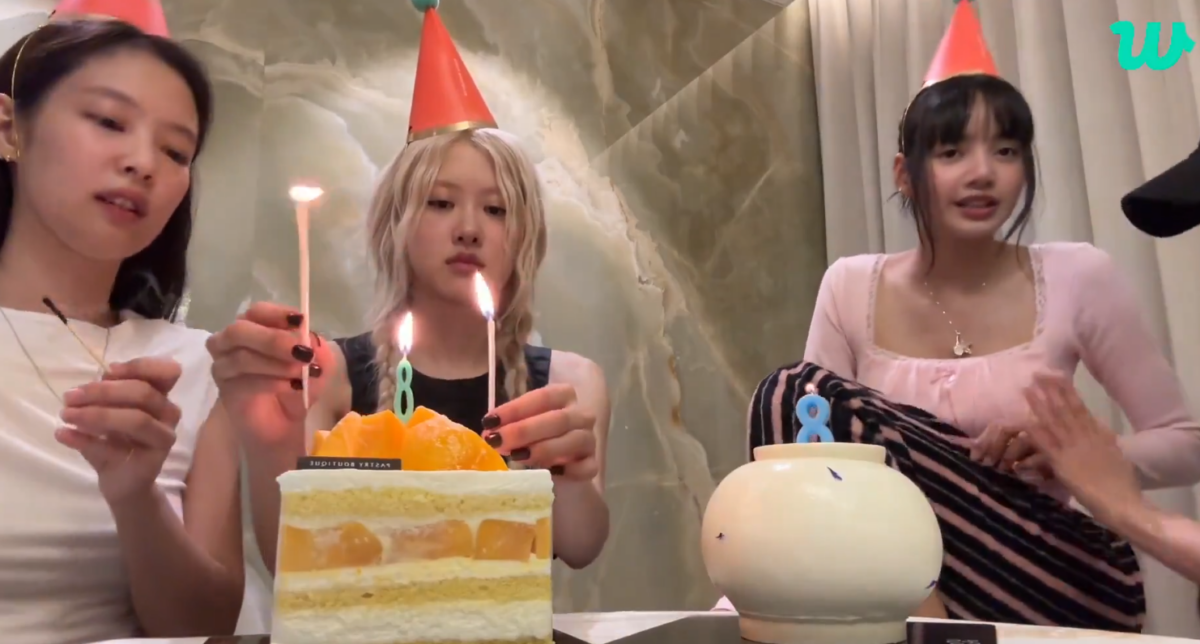直播一開始BLACKPINK就表現的既興奮有害羞的樣子向大家問好,開心的說:「今天是BLACKPINK的8周年~我們的8周年~」氣氛相當愉悅。當天Jennie和Rosé也特地準備了蛋糕,只不過Rosé的芒果蛋糕與Jennie看起來像藝術品蛋糕風格超不一樣,畫面超級好笑被成員們逗了一下,甚至現場玩起像是競標一樣的猜蛋糕價錢大賽,結果Rosé的蛋糕其實也要10萬8千元不便宜XD