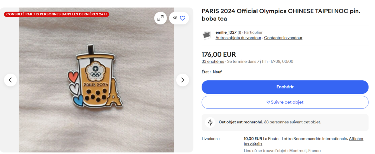 人氣最高!巴黎奧運台灣「珍珠奶茶徽章」爆紅,拍賣價格破萬大家瘋搶收藏