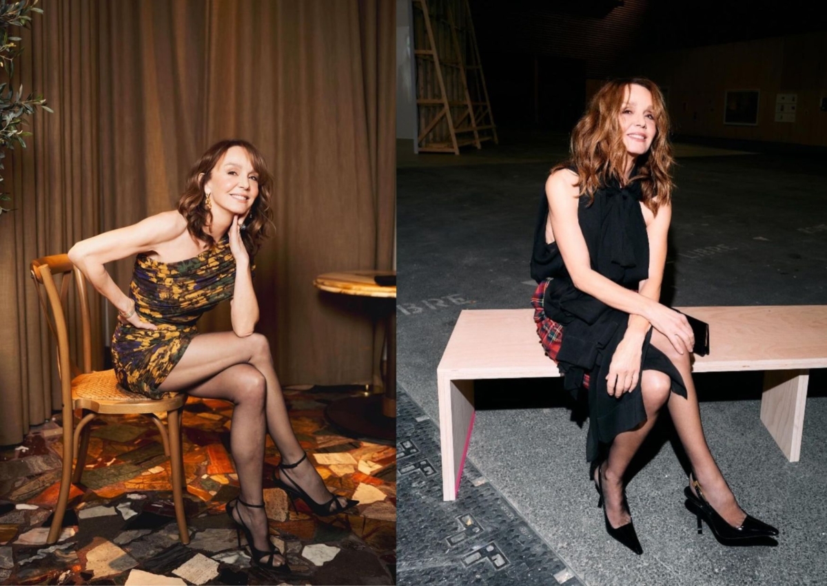 希維爾 Sylvie 在進行《艾蜜莉在巴黎》的宣傳時,依舊以濃濃的法式女人風格帶出人設感,除了在服裝面料上可以選擇透膚、蕾絲等細節之外,黑色絲襪更是能襯托全身亮點的單品之一,帶有端莊氣息、同時也注入了性感成分,外搭一件寬版西裝外套就很時髦。
