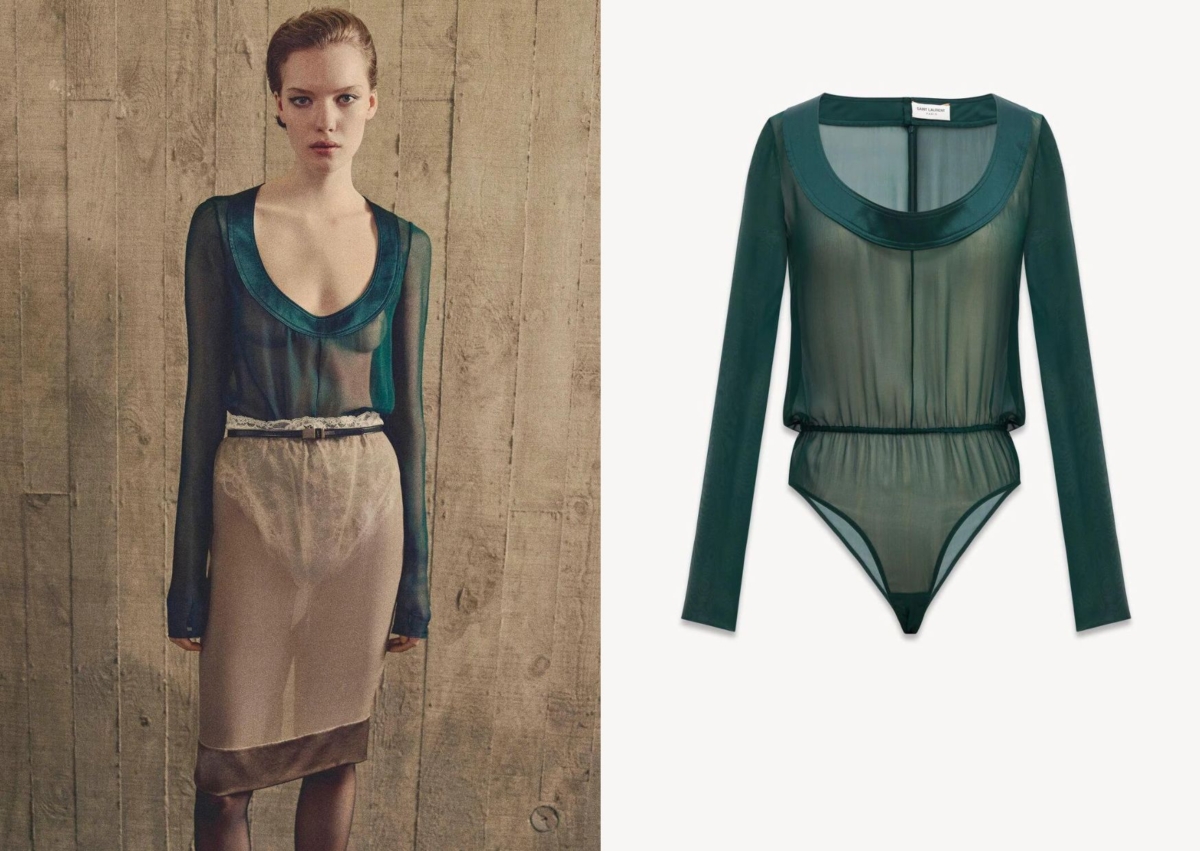 希維爾 Sylvie 的法式穿搭公式第三點莫過於一件深 V 低胸的剪裁,劇中上衣經常選擇俐落的剪裁以低袖籠、深V與挖背設計,能輕鬆地展露平常不容易看見的身體肌膚、卻不過分張揚,讓整體穿搭一眼看過去就能抓住眼球,加上蕾絲細節增添層次感。