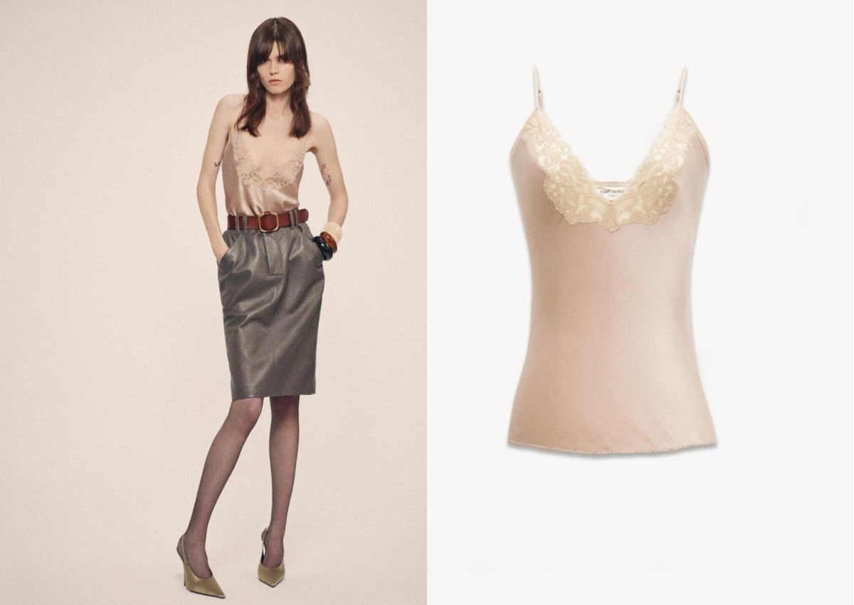 提到法式穿搭,透膚蕾絲是最能展現法式韻味的單品之一,通常以緞面、絲質為主,對於敢穿一點的女性,可以直接單穿、不需要再貼胸貼或胸墊,可以說是標準法式 Look!