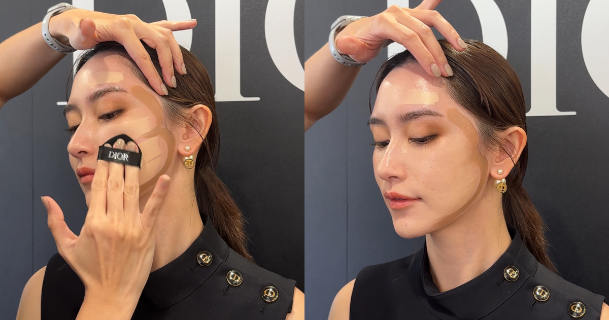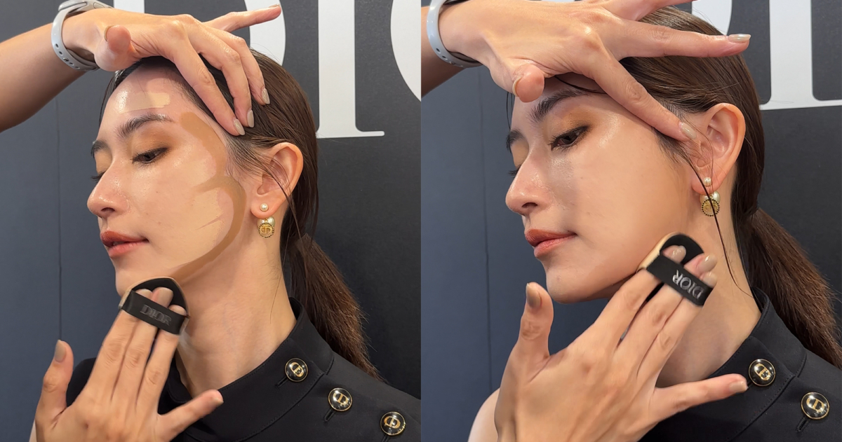 在完成了粉底的分層上妝後,下一步就是將這些色彩均勻地融合在一起。可以像彩妝老師一樣使用平時上妝的粉撲或是美妝蛋,以輕輕拍打的方式上妝,切記不要來回塗抹唷,這樣可以避免破壞已經與肌膚貼合的底妝。輕輕拍開粉底的動作可以讓粉底更好地貼合肌膚,並且讓深色與淺色的過渡更加自然,確保每個部位的粉底都被推勻,特別是在修容的部分,這樣才能達到更佳的立體效果,同時保持妝容的輕盈和無瑕。