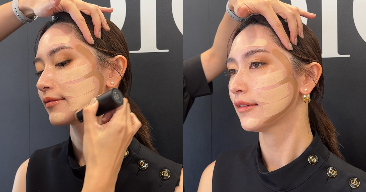「粉底棒」骨相底妝步驟2:深色輪廓修容畫出「3」
