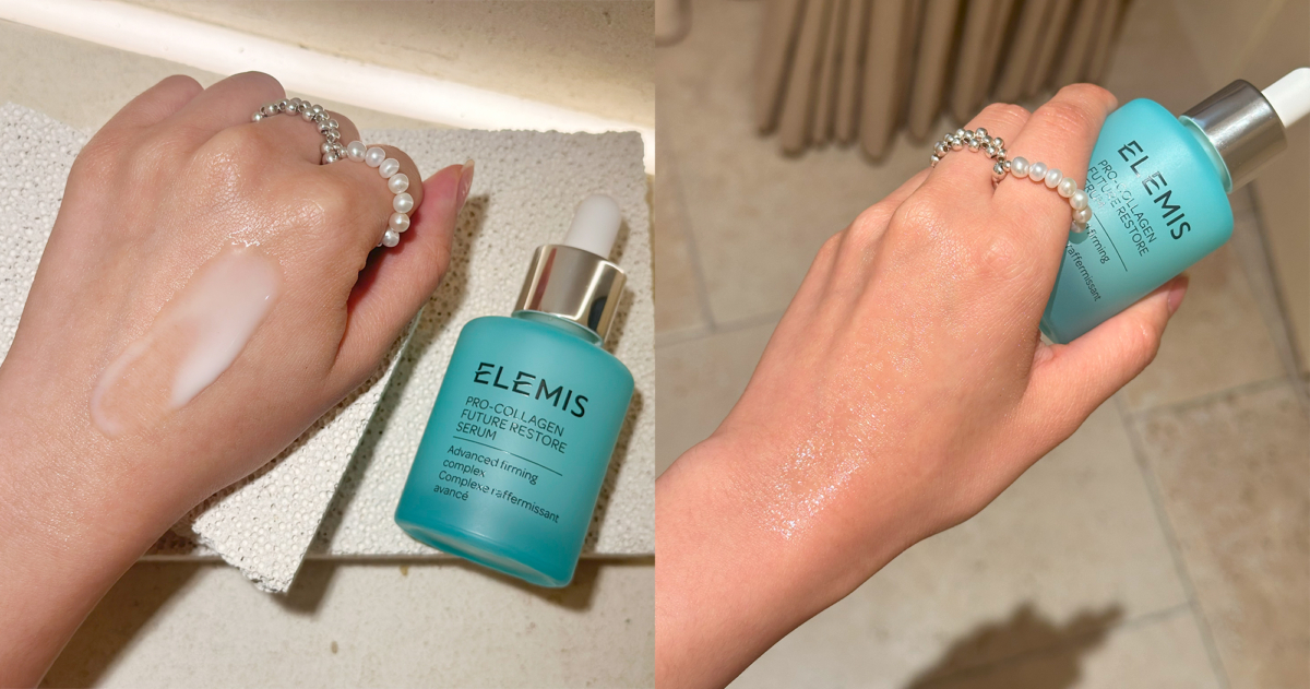 有在關注抗老保養的女孩一定知道從二十歲開始,膠原蛋白就會逐漸流失,不但會衍生細紋、皺紋等臉部紋路,甚至還可能有凹陷、鬆弛、毛孔粗大等肌膚困擾,《海洋膠原全能逆時精華》成功研發世界首創「3重逆時海藻膠原複合物」,將範氏斜斑藻、菱形藻、並基角毛藻三種微米海洋矽藻萃取複合物,並結合海洋細胞脂質有機化合物、海洋角蛋白酶,以及ELEMIS品牌明星成分地中海粉紅團扇藻提取物等高效海洋膠原活性成分,不僅可以改善初老肌膚問題,編輯實際使用後妝容也更加服貼,質地更是輕盈好吸收完全不怕黏!